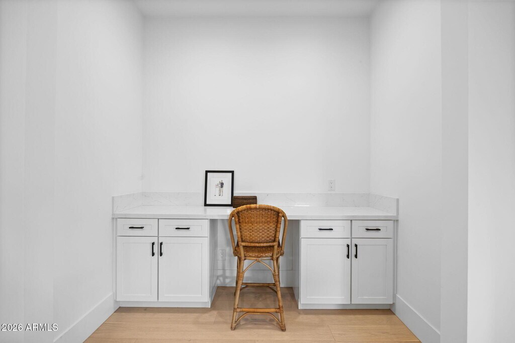 This thoughtfully designed home is available furnished or unfurnished with a flexible start date,offering modern luxury living in one of Arcadia's most sought-after locations,just a short walk to local favorites like LGO,Tee Pee,and Kachina Park,and within the highly coveted Hopi School boundaries.The versatile floor plan is ideal for flexible living,featuring a primary suite and dedicated office on the main level,while upstairs offers a second primary suite,two additional guest bedrooms,a secondary living space,and another office,perfect for remote work or multi-generational living. The chef's kitchen includes abundant cabinetry,a large island for entertaining,and an oversized walk-in pantry. Additional highlights include exceptional storage throughout,a spacious laundry room,whole-house water filtration and softener,custom window treatments,and stunning Camelback Mountain views. Enjoy a low-maintenance backyard with a covered patio and private pool--ideal for relaxing or entertaining year-round.