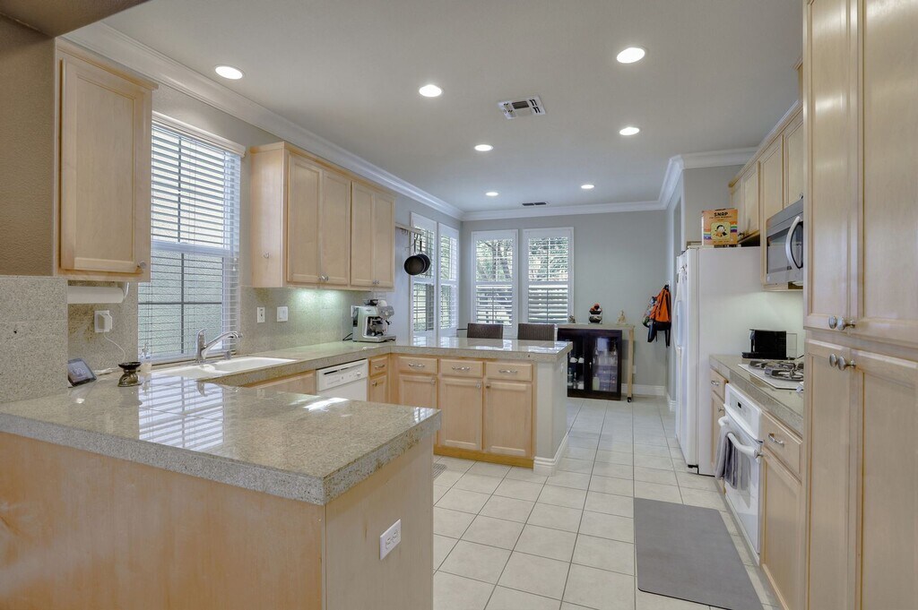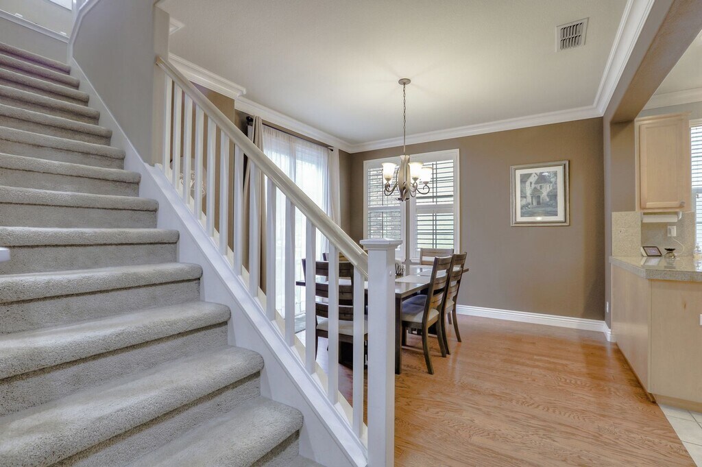 UPGRADED HOME WITH POPULAR FLOORPLAN ELEGANT SPACES | COVETED ACCESS Facing a green belt and enjoying no neighbors directly in front, this home in The Greens subdivision of Rivermark follows The Greens II Plan 3, a popular layout that balances spaciousness with functionality. Sunny rooms boast upgrades like extensive crown molding, plantation shutters, designer paint, and stylish floors. A living room with gas fireplace is perfect for entertaining, while the loft is designed for casual gatherings. Flanked by the formal dining room and breakfast nook, the kitchen offers granite finishes and bar seating. The master suite is grand and private with a walk-in closet and luxury bath. Enjoy a private leisure patio, upper laundry, and side-by-side two-car garage with driveway. Stroll to the pool, library, Live Oak Park, Rivermark Village, and Don Callejon School. Near Oracle, Cisco, Light Rail, Google, Levi’s Stadium, and more! • 3 Bedrooms • 2.5 Bathrooms • House | 2,036 SF