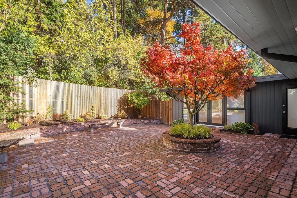 Black metal and glass, exposed brick, vaulted cedar ceilings, floor to ceiling west facing windows and peaceful Lake Washington views. Effortlessly cool vibes, this iconic midcentury home located in the highly desirable Mercer Island west side neighborhood, Boulevard Place! From its clean architectural lines to retro -modern flair, renovated for today's modern lifestyle with an eye toward preservation. Indoor outdoor living with a generous view deck, private interior courtyard and French doors off beautiful new ensuite primary bedroom. Open layout with new kitchen, new office, central AC, Three beds, 3 baths on the main floor. A spacious lower level bedroom, plus a media room or work out space. Sited on a serene, private & sunny lot just steps from community waterfront. The best Mercer Island has to offer. Landscape maintenance included. Pets OK! Please inquire for details.