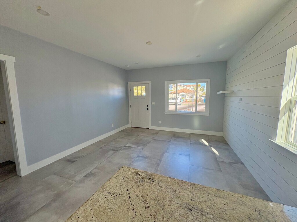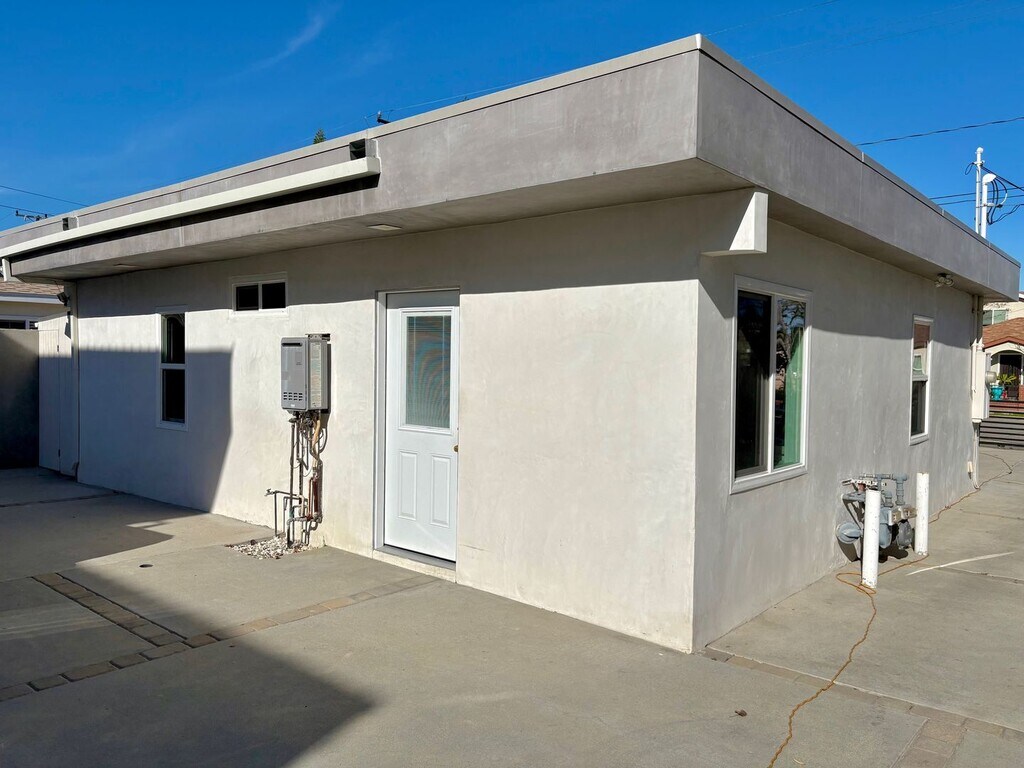 2-bedroom, 1-bath front house includes: New tile floor throughout. Fresh paint throughout. Granite counters and custom cabinetry in kitchen. Frameless glass shower door in beautiful bathroom. Vinyl windows throughout. One parking space at front of house. Laundry hookups outside in pivate patio space. Tenant pays water, gas and electric. Owner pays trash.