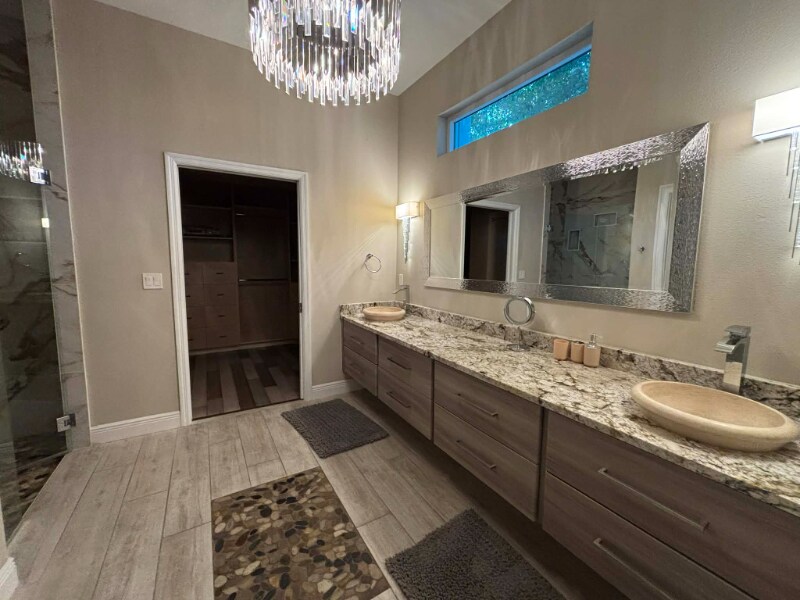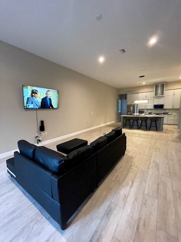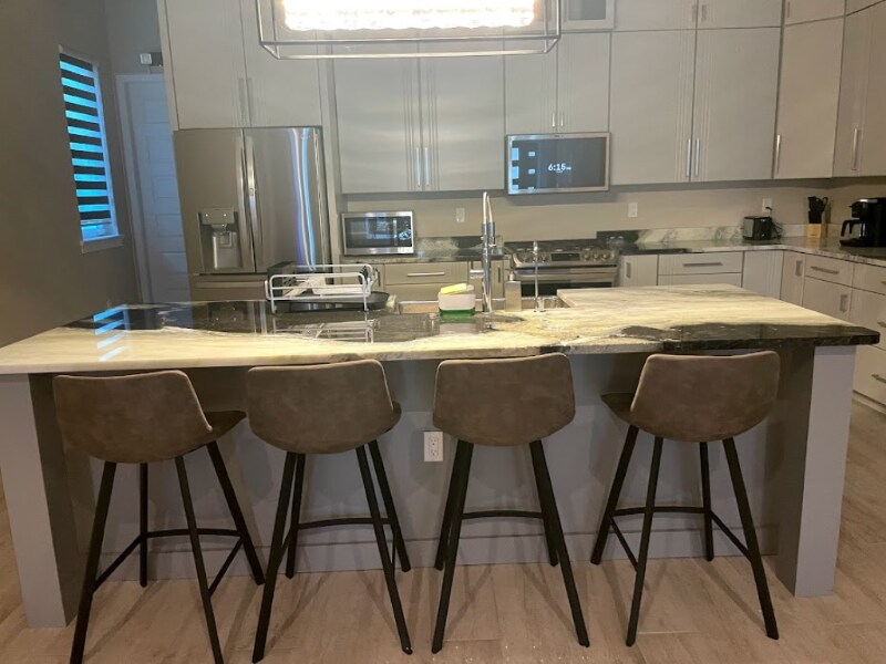 Property Id: 2332907 Beautiful modern 2- story builders special home in Largo, Florida! Located just 5 short miles from beautiful Florida beaches. Surrounded by plenty of restaurants, grocery stores, and schools. Home is equipped with gas water heater so you can turn on from your phone for instant hot water, no waiting at all! Brand new electric washer & dryer included. All gorgeous granite countertops and unique chandelier lighting. Very big spacious bedrooms, as well as large closets! The master bedroom is equipped with a ton of great features including sliding barn doors connecting the master bed to the master bath, His and hers shower in the master bathroom, Master closest also has easy built in hampers & plenty of shelving, as well as a fireplace in the master. Upstairs rooms are spacious with huge closets, with jack and Jill bathroom. Special features throughout the home include Roof deck, courtyard with gas fire pit and fountain, storefront windows gorgeous rock wall inside with led lighting, and high ceilings.
