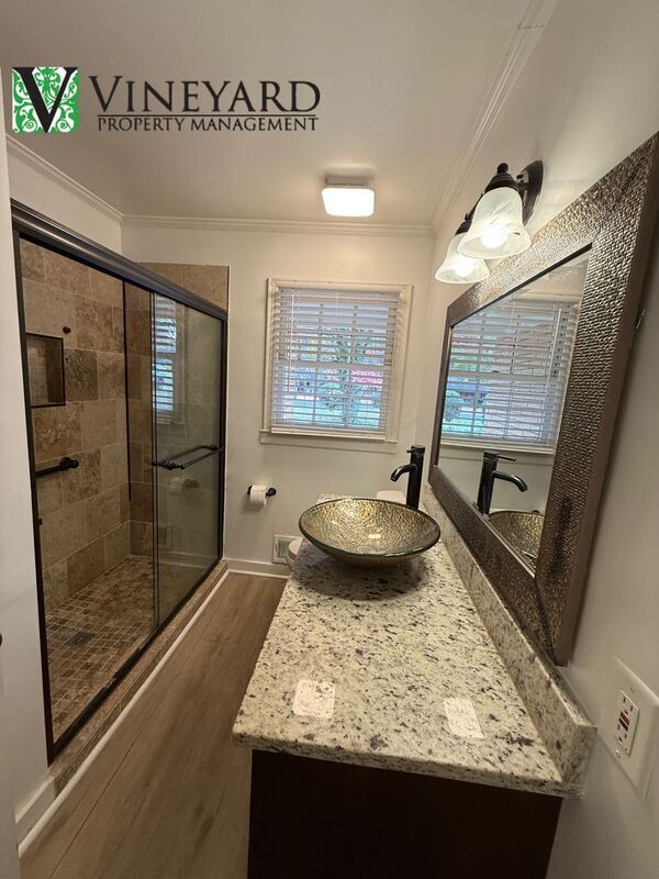This property is managed by VINEYARD Property Management ONLY. If you are viewing this listing on any third-party site, please visit our website, for the most accurate information and quickest communication. 3 bedroom/ 2 bath brick ranch. East Cobb-Sprayberry High School District. Quite Kings Wood neighborhood. Great Location Close to Town Center Mall and all conveniences. Minutes to I-75 and I-575. Great level backyard. Gleaming refinished hardwood floors throughout. Neutral Paint Color Throughout. Updated hall bath. White kitchen cabinets with quartz countertops and sink. Large kitchen with, additional sunroom leads out to new deck that overlooks a huge backyard, partially fenced. Additional Storage space in a large Barn and Storage off carport. Dryer is provided since it is gas hookups. Tenant provides washer only. Schools: Bells Ferry Elem, Daniell Middle, Sprayberry High 1 Small or Medium Dog or Cat ( No aggressive breeds or pets under age 2) $350 non refundable pet fee To apply, please go to (do not apply through a 3rd party site or send anyone a wire payment as this may be a scam) Only 2 adult non-familial occupants Application Qualifications: (note all occupants above the age of 18 must fill out an application and be on the lease) Credit/background check- (min 625) credit content will be considered - collection accounts may disqualify) Must make at least 3x the monthly rent (can be combined between applicants) Must have a minimum of 2 years, excellent rental history or mortgage history, evictions or housing collection debt will not be accepted. Co-Signers will not be accepted for lack of meeting credit criteria Application fees are non-refundable regardless of selection decision Hold Deposit (once approved) is equal to 1 month of rent Move In Fee $250 Amenities: None
