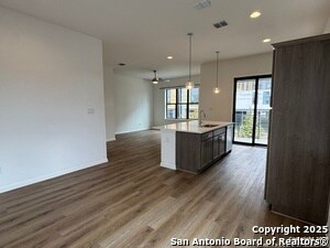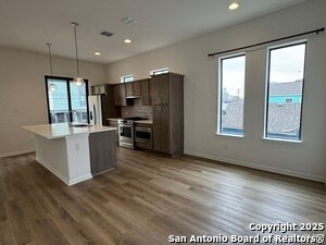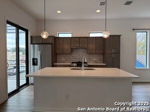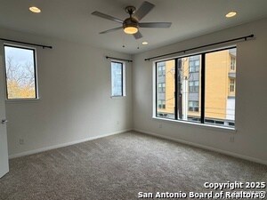 Constructed in 2023, The Jackson at Five Points urban community is located just minutes from a diverse selection of dining, shopping and entertainment options with The Pearl to the north and the heart of vibrant Downtown San Antonio to the south. The layout for Unit 101 features a 2-car garage on the ground level; half-bath, kitchen, dining and living areas in an open floor plan on the second level, and 2 bedrooms with full-baths on the third level. The kitchen features stainless steel appliances, solid-stone countertops and a generously sized island. Leading off of the kitchen is the balcony with excellent views of the city skyline. Each bedroom has its own en-suite bathroom and walk-in closet. The hallmark of the primary bathroom is the spacious layout, large glass enclosed shower and solid-stone double sink vanity. Large windows throughout the home fills each room with natural light.