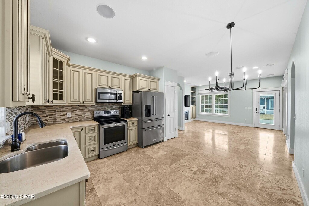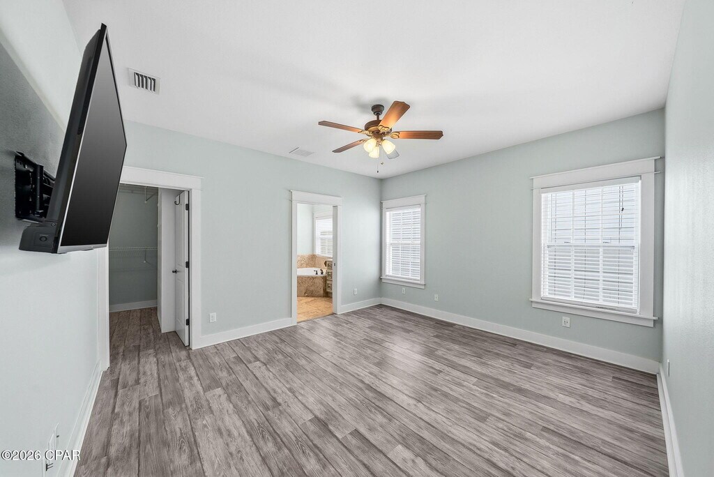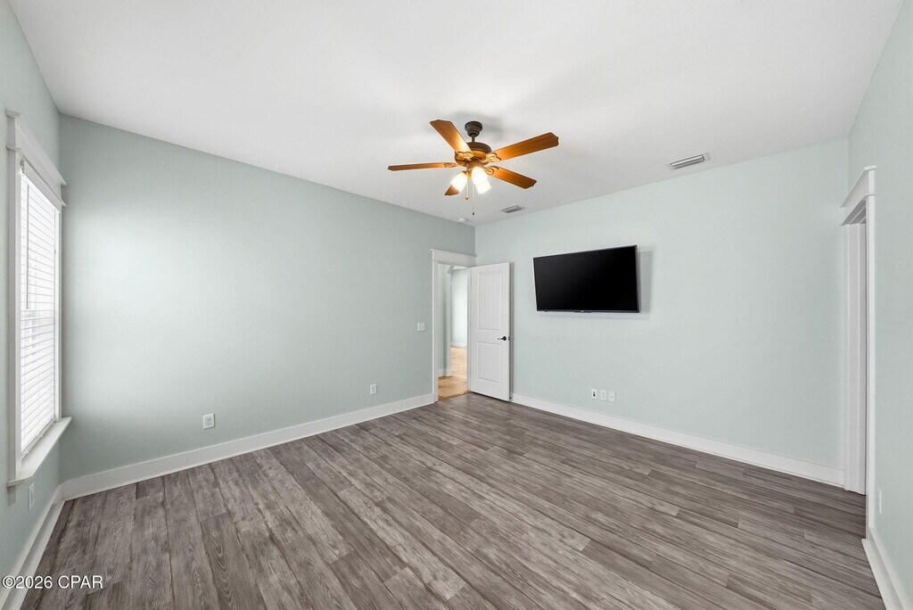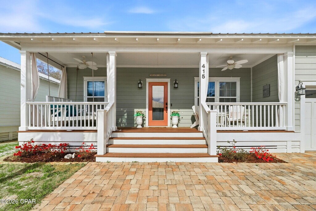 Welcome to 415 Paradise Blvd, a beautiful 3 bedroom, 2 bath beach home located on the desirable west end of Panama City Beach. Inside, you'll find tile and LVP flooring throughout, along with an open-concept living and kitchen area that creates a bright and inviting space. The kitchen features stainless steel appliances and plenty of room for cooking and gathering. The spacious primary suite offers a double vanity, walk-in shower, jetted tub, and a walk-in closet just off the bedroom. Step outside to enjoy the coastal lifestyle from either the front porch or the back patio--perfect for relaxing or entertaining guests. Residents can also enjoy the well-maintained community pool, and the beach is just a short ride away, making it easy to soak up the sun and enjoy everything Panama City Beach has to offer.
