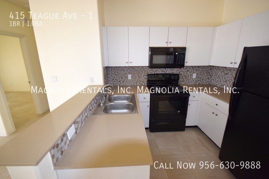 1st Month Free with 13 Month Lease 415 Teague in Edinburg, TX offers a one-bedroom, one-bath residence featuring an open floor plan with vaulted ceilings, ceiling fans, and tile flooring. The kitchen includes granite countertops, a stove/oven, refrigerator, and microwave, and in-home convenience is provided with a washer and dryer. The unit has a walk-in closet and a master bath, and central AC keeps the space comfortable. The gated property is pet friendly with breed restrictions, offers 24/7 maintenance support, and requires a 12-month lease with tenants responsible for all utilities. No smoking is allowed. 12 Month Lease 24/7 Maintenance Support Central Ac Granite Countertops Pet Friendly With Breed Restrictions Tile Floor
