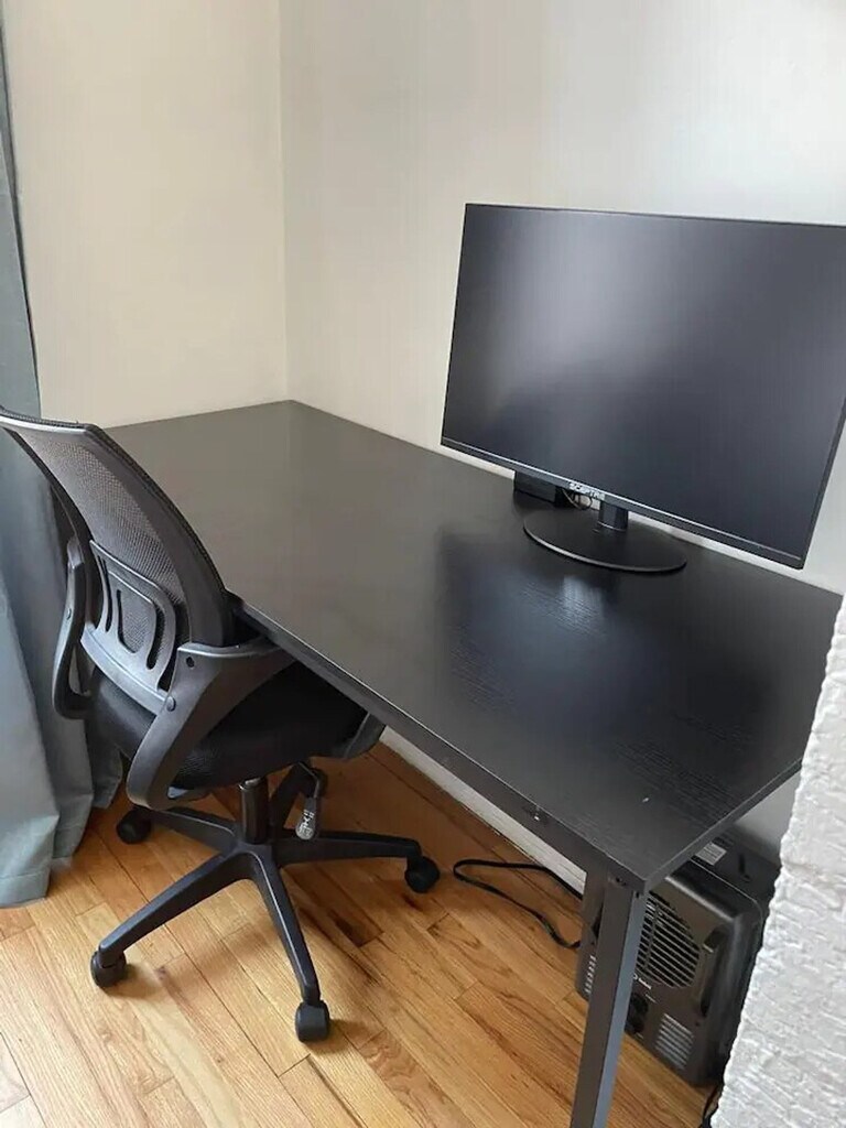 Feel at home in this modern 3-bedroom, 1-bathroom apartment, ideally located between Hudson Yards, Midtown West, and Midtown South, just a short walk from Times Square. The apartment is on the 3rd floor of a traditional NYC walk-up building, accessible by two flights of stairs. Experience the best of New York City in this beautifully furnished apartment. Each of the three bedrooms features a cozy queen-size bed. The full kitchen is equipped with modern appliances including a stove, oven, refrigerator, and all the cookware and utensils you’ll need to prepare meals during your stay. This apartment’s location is unbeatable. You’ll be just a short stroll away from the excitement of Times Square, the luxury of Hudson Yards, and the convenience of Midtown West and Midtown South. Enjoy world-class shopping, dining, and entertainment, with iconic landmarks like the Empire State Building, Madison Square Garden, and the High Line all within easy reach. Plus, with access to multiple subway lines nearby, getting around the city couldn’t be easier. Typical city noises—such as traffic, sirens, and street activity—are to be expected, especially due to the central location near Times Square. Light sleepers may want to bring earplugs. Each bedroom features a private desk, perfect for work or relaxation.