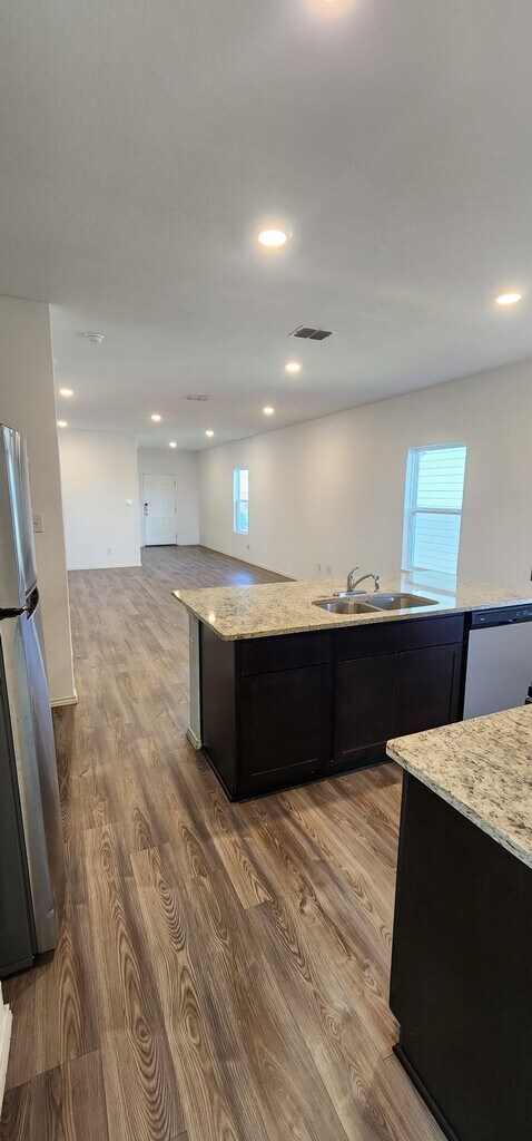 Move-in ready home, built in 2022! 4 bedroom 2 baths 2 car garage has room for the entire family! This cute home has an open floor plan with stylish wood vinyl plank flooring. Beautiful Granite countertops elevate this open kitchen with espresso cabinets, stainless steel appliances, and tall ceilings. All bedrooms and Master suite features plush carpet. Master bedroom is tucked towards the end of the home and has windows facing the backyard, giving the master suite more privacy. Master bathroom has double vanity with shower, linen closet, walk-in closet, and private door for commode room, giving this room comfort and functionality. Community is still growing, home is nearby community playground. Easy access to IH10 and 1604. Minutes to Randolph Air Force Base, great schools, minutes from IH35 for easy commute to shopping, Fort Sam, Downtown, and other points of interest. Rent: $1750 Pet Rent $35 Security Deposit: $1750 Cleaning Fee $400 Pet Deposit $500 Sorry No Section 8