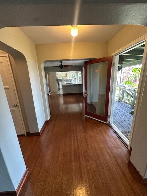 Adorable Quaint Property situated high on a hill. Charming 3 bedroom 2 bath home nestled in the hills of La Mesa. Home boasts wrap around decks and views to Point Loma. Hardwood floors throughout with Interior craftsman design, arched entries and wood burning fireplace. Open Kitchen to Dining area. 2-car garage with washer/Dryer. Pets welcome. Trash, Sewer, Gardener included in monthly rent! Available mid-May