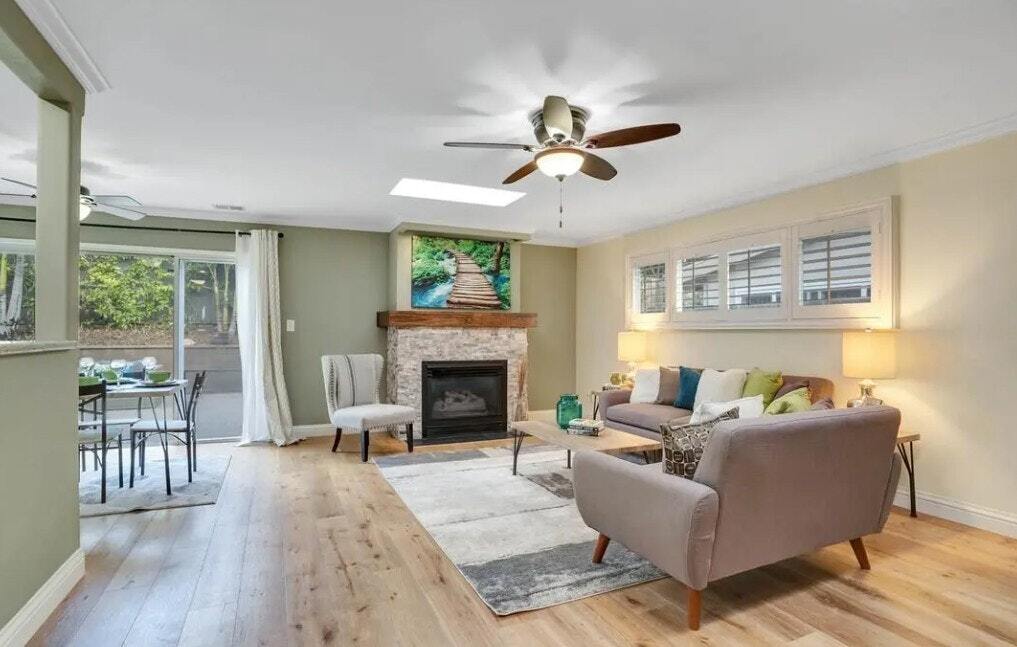 Welcome home to this beautiful house located in one of the most desirable & private neighborhood of the coveted "Mount Streets". Enjoy the modern features of the open floor plan, while appreciating the quaintness of the white picket fence front yard. With an upgraded kitchen featuring stainless steel appliances & natural stone counters, a large living room with skylights and stone fireplace, as well as updated bathrooms, & stunning oak wood floors you will be the envy of the neighborhood. HAS SOLAR!