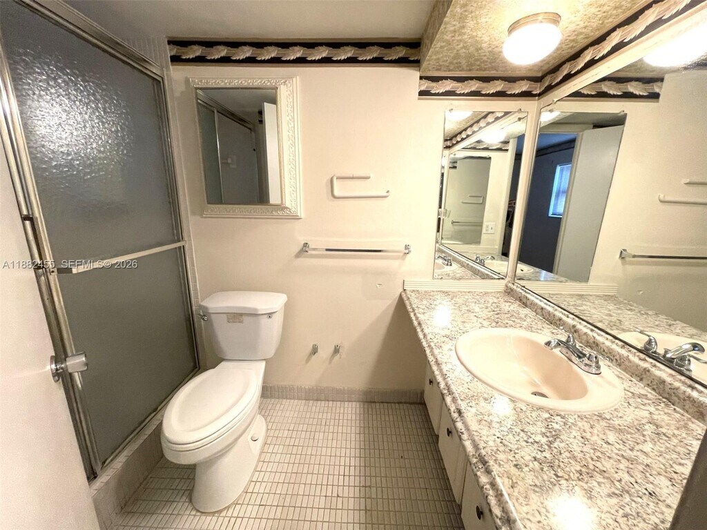 MOVE IN READY! 2/2 Condo for Rent. Well kept unit in 55+ building. Features nice size kitchen, tile and laminated flooring, large screened balcony and spacious master bedroom with a walk-in closet. Assigned parking. Nice community. Housing voucher welcome. Easy to show! MLS # A11882455