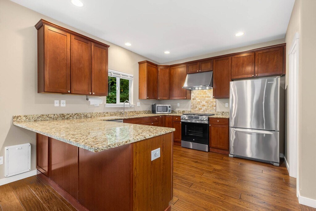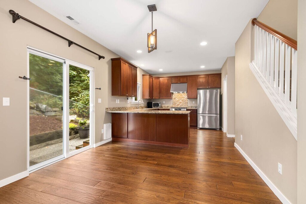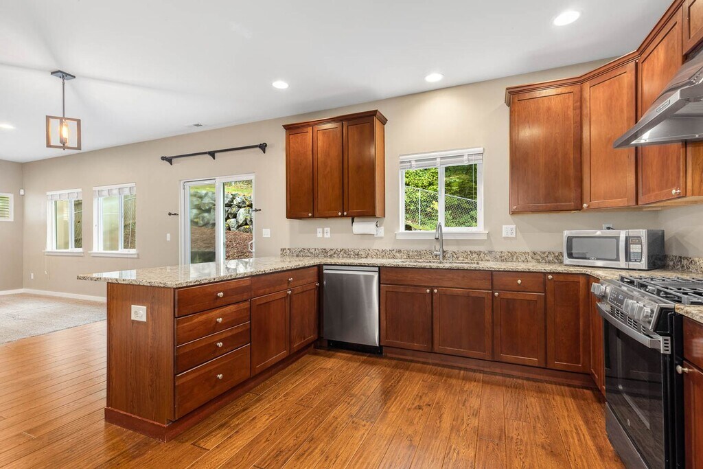 This classic Craftsman offers the perfect blend of formal and casual living. Warm hardwood floors lead you through inviting spaces, while the gourmet kitchen features granite counters, a gas range, pantry, and a convenient main-level bedroom ideal for guests. Upstairs, you’ll find an expansive loft perfect for entertaining, a grand primary suite with a soaking tub and large walk-in closet, plus two additional bedrooms. Custom closets and an oversized two-car garage provide ample storage throughout. Enjoy the outdoors with a private patio, deck, turf lawn overlooking a serene native growth protection area. Located in the sought-after Northshore School District, with a neighborhood park nearby and easy access to I-405. 16-18 month lease only Required Resident Benefit Program for an additional $36.50 per month. Program details and benefits can be found at
