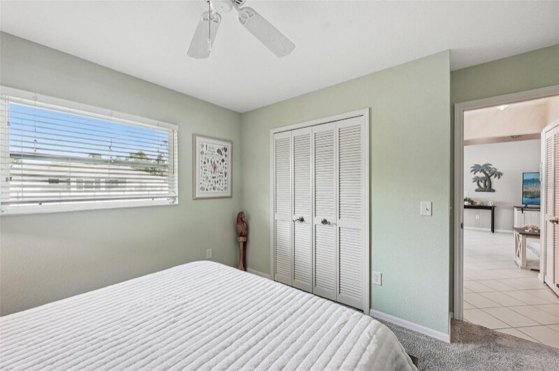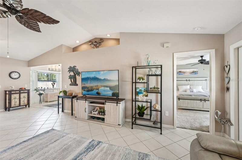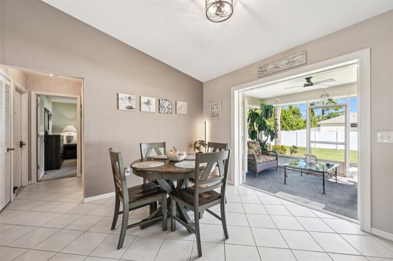 Property Id: 2183217 Welcome home to your Florida getaway! This beautifully cared-for 2-bedroom, 2-bath home feels light, open, and inviting from the moment you step inside. Soaring cathedral ceilings, diagonal tile flooring, and tasteful décor create a bright, comfortable vibe throughout. The kitchen includes a pantry, a suite of appliances, and space for a table. The split-bedroom layout offers privacy, with a spacious primary suite featuring dual sinks, a walk-in closet, and a tiled shower. The guest bath includes a tub/shower combo. French doors lead to a screened lanai, perfect for morning coffee, overlooking tropical landscaping and a large backyard with room for a pool. Recent updates include a hurricane-rated front door, new back patio, re-screened lanai, and refreshed landscaping. Located minutes from shopping, dining, parks, and just a short drive to world-class beaches and golf, this home is ideal for year-round living or a sunny seasonal escape.