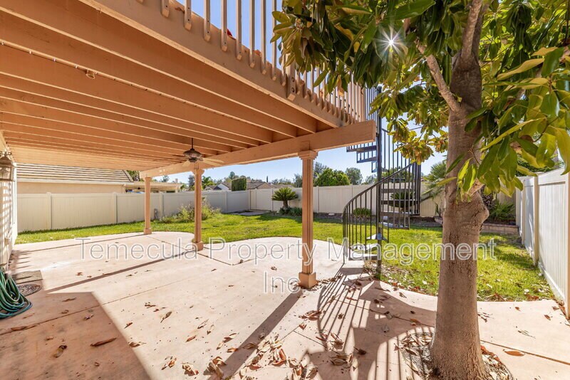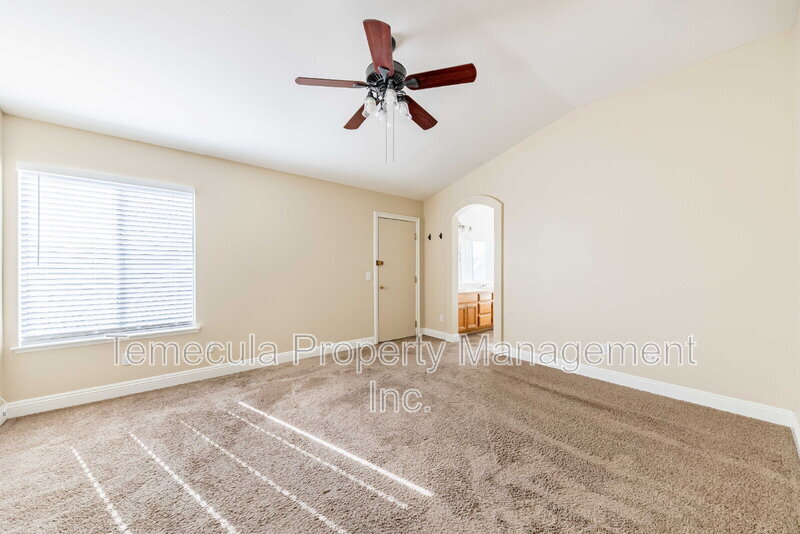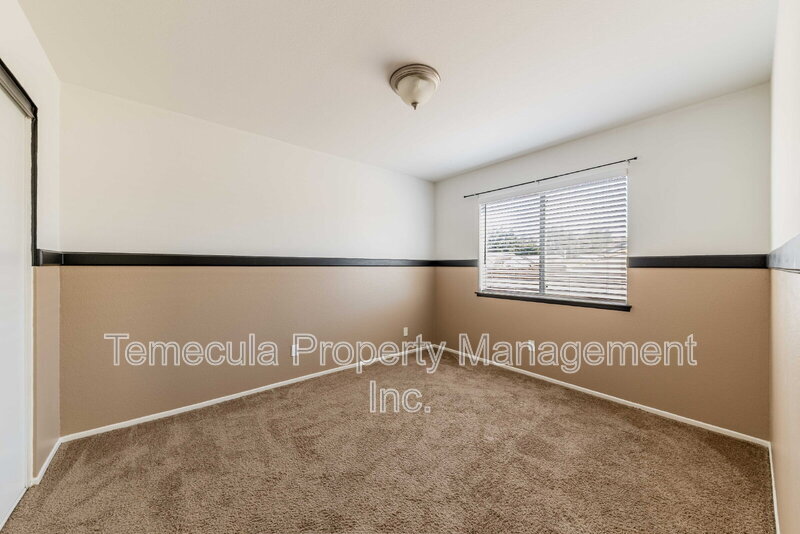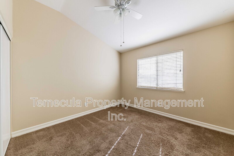 This beautiful home is nestled on a quiet cul-de-sac in the heart of Temecula, just minutes from wine country. A spacious living room that features vaulted ceilings, a family room with a fireplace, a kitchen with granite countertops, and an island. There is a downstairs bedroom and a full bathroom. Upstairs has 3 more great bedrooms, including a huge master with a walk-in closet, separate shower/tub, and a balcony that overlooks a really nice backyard with a lawn, trees and a covered patio for relaxation. There is also an awesome loft/bonus room. The house comes with a 2-car garage.