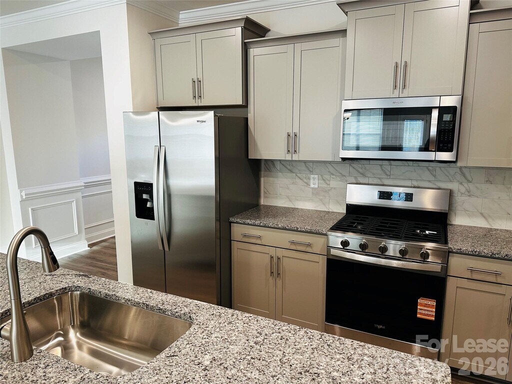 Be the first to live in this luxurious,brand-new 2,570 square foot townhome located in the highly sought-after Black Bay community of Sherrills Ford,NC. This stunning residence features four bedrooms and three full bathrooms,beginning with an inviting foyer that leads into an expansive open-concept kitchen,dining area,and living room. The chef-inspired kitchen is equipped with ample gray shaker-style cabinets,granite countertops,a tile backsplash,and a large center island with a breakfast bar. Premium stainless steel appliances—including a gas range,dishwasher,refrigerator,and over-the-counter microwave—make this space as functional as it is beautiful. A versatile secondary bedroom is located on the first floor adjacent to a full bathroom,offering the perfect footprint for a spacious home office or guest suite. Practicality meets style with a two-car attached garage that leads into a dedicated drop zone and pantry,while the rear patio provides an outdoor retreat. Upstairs,a versatile loft area serves as a secondary living space to suit your specific needs. The massive primary suite features a spa-like ensuite bathroom with a stand-up shower,a garden tub,a dual-sink vanity with granite countertops,and a separate water closet,all connecting to an impressively large walk-in closet. Two additional secondary bedrooms—one featuring its own walk-in closet—and a dedicated laundry room equipped with a washer and dryer complete the second level. Residents of Black Bay enjoy access to premium community amenities,including a pool and a dog park. This property is strictly non-smoking and non-vaping. While landscaping is included for a low-maintenance lifestyle,the tenant is responsible for all utilities. Pets are welcome and require a $350.00 non-refundable pet fee. Conveniently located for shopping,dining,and Lake Norman. Don't miss your opportunity to call this your new home. MLS ID CAR4342696