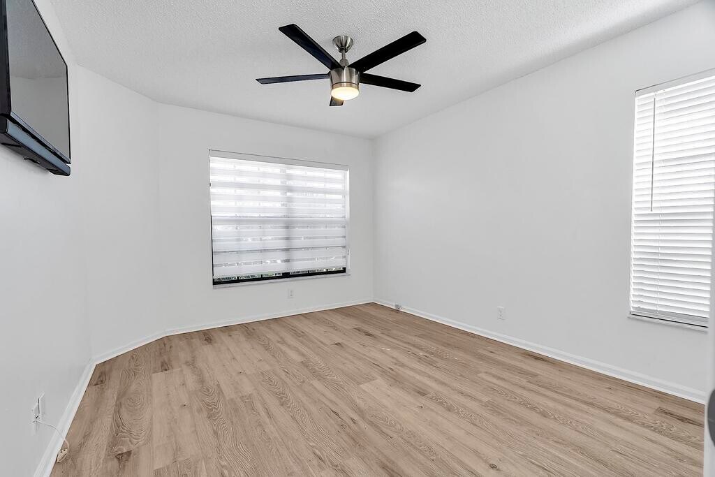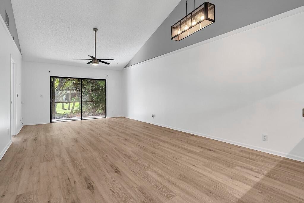 Available now. Superb East Boca location. Spacious 2 bedroom 2 bath villa with soaring ceilings, open floor plan and screened-in patio. Modern kitchen and baths with walk-in closet and in unit washer & dryer. Garage converted into an extra room perfect for an office, home gym or studio. The Windwood community is surrounded by nature with two community pools, tennis courts, walking trails and more. Centrally located in East Boca, close to parks, top rated schools, I-95, FAU, Boca Regional Hospital and is only 1.5 miles to the beach.