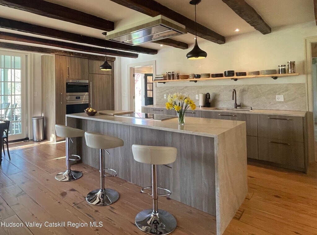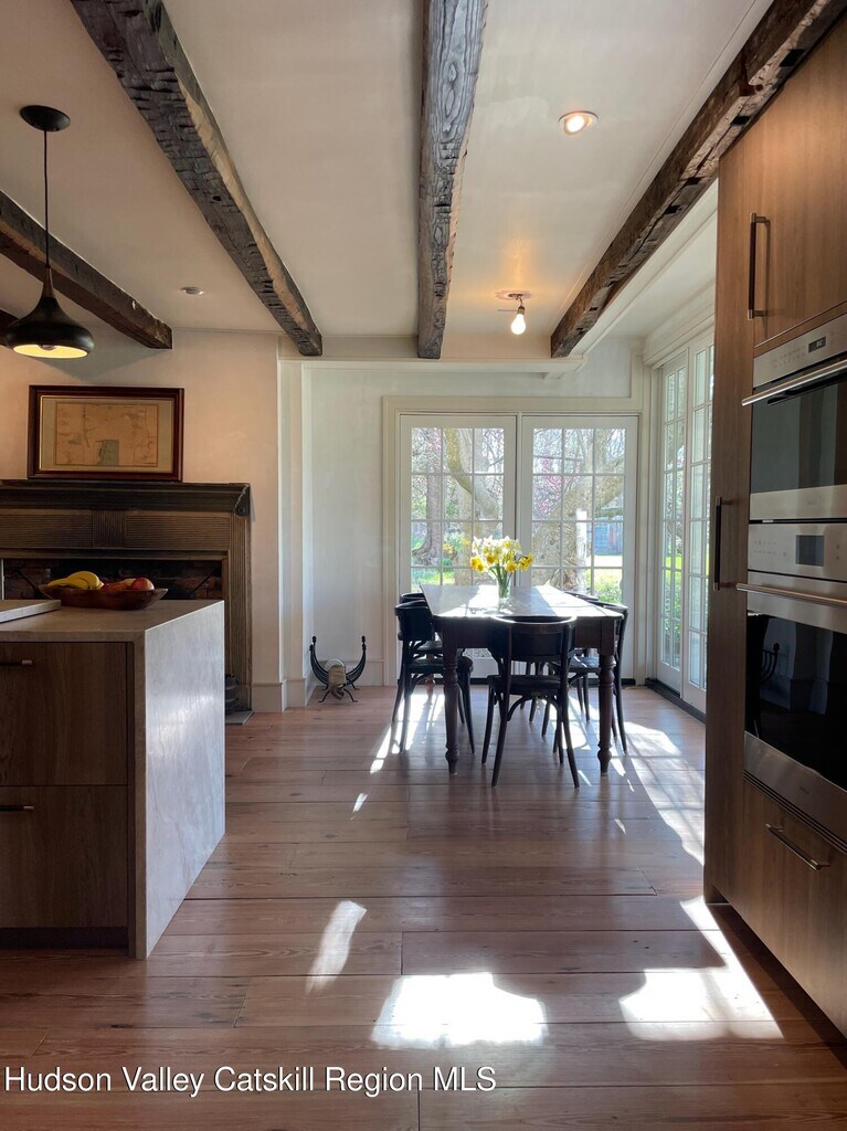 Welcome to Near Farm,a historic farm in Red Hook,New York,constructed by master craftsmen in the 1840s with roots dating back to the Palatine era of the late 1700s. Meticulously restored and landscaped by the current owner,this farmhouse has been upgraded to the highest standards while preserving its historic character. **The house is available for rent for the summer season from Memorial Day,May 25,to Labor Day,September 7,for 45,000 plus a 10,000 security deposit. Utilities included** The house is situated on a promontory overlooking a pond,and the driveway entrances are marked by two magnificent old red barns. There are two driveways: one leading to the house and the other to the farm. Upon approaching the house,one is immediately enveloped by a sense of serenity and tranquility. Mass plantings of Viburnum,Hibiscus,and Hydrangeas frame the freshly landscaped lawn,creating an immersive experience that blooms throughout the summer season. The interior of the house is a testament to meticulous restoration. Throughout the house,the original wide-board floors have been liberated from the accumulated layers over the years and are resplendent in their restored glory. The walls are professionally finished with diamond plaster,polished to perfection,and adorned with a modern neutral color palette. The French doors on the first floor impart an airy and free-flowing ambiance,allowing natural light to penetrate unobstructed. The spacious kitchen boasts leathered Taj Mahal quartzite countertops and a large waterfall island with seating. Sub-Zero and Wolff appliances are integrated,and a separate pantry is provided. Large glass sliding doors offer access to the south-facing stone patio. The kitchen,dining room,and living room all feature functional fireplaces. A unique and unusually wide center hallway exudes a grandeur uncommon to farmhouses of this era. Upstairs,the obtrusive low ceilings characteristic of homes of this period have been replaced by a spacious and light-filled hallway. It accommodates four bedrooms,two of which feature ensuite bathrooms,and is finished to perfection with contemporary touches. Near Farm has undergone a comprehensive modernization transformation,becoming a fully integrated smart home. This transformation includes a 13 kilowatt solar array,geothermal HVAC system (eliminating the use of fossil fuels),a new hydrostatic well pump,a comprehensive whole-house humidification system,a whole-house hot water recirculation system for instantaneous hot water,a 30-gallon-per-day reverse osmosis drinking water system,heated bathroom floors,Lutron Caseta smart switches,security cameras,and a doorbell,all of which are controlled through the Google/Apple Home app. On the farm side,the property encompasses 60 acres of open farmland divided into two levels: a 30-acre flat farm field,ideal for a horse facility,and another 30 acres featuring rolling meadows with breathtaking sunset views. The farm is equipped with its own electric service and a well. Additionally,there are numerous barns,sheds,and outbuildings. Hapeman Hill Road is strategically located,providing easy access to Red Hook,Rhinebeck,Tivoli,and the Taconic State Parkway. Furthermore,it is situated near the Fisher Performing Arts Center at Bard College. Broker-owned.