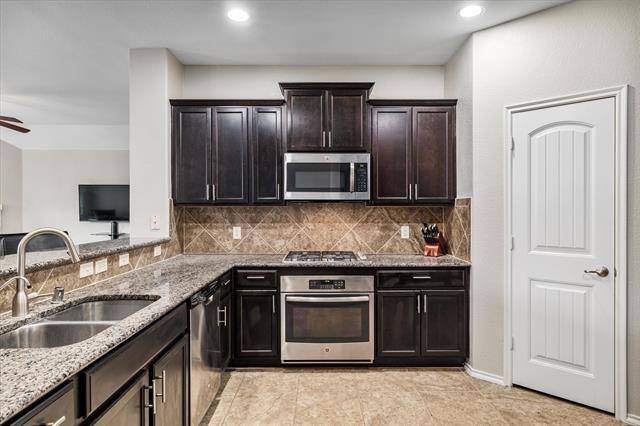 Situated in Valor Pointe-The Reserve at Westridge, this well appointed, move-in ready EAST FACING home in the heart of McKinney has versatile living spaces to suit YOUR needs! The front room can be used as a guestroom or office. The open space off of the expansive foyer can be used as formal dining, music room, library, lounge....the choice is yours! Enjoy friends & family gatherings in the open concept living, kitchen and breakfast room. Spacious kitchen with granite counters, breakfast bar, large walk in pantry, stainless steel dishwasher, microwave, gas cooktop and oven overlooks the breakfast room and living room with ceiling fan and gas fire place. A wall of windows bathes the home in natural light. Easy maintenance tile in the common areas and cozy carpet in the bedrooms. The large primary room has plenty of space for a sitting area and ensuite bathroom features double sinks, a large walk in shower and relaxing spa like tub. Split floorplan means privacy for all with two guestrooms and full bath across the home. Retreat to the backyard to enjoy evenings on the covered patio and plan your kitchen garden! Easy access to major roads, highways 380 & 75 and the Dallas North Tollway makes for quick commutes to Dallas, airports and local shopping, dining and entertainment. Zoned for the highly regarded Prosper ISD.