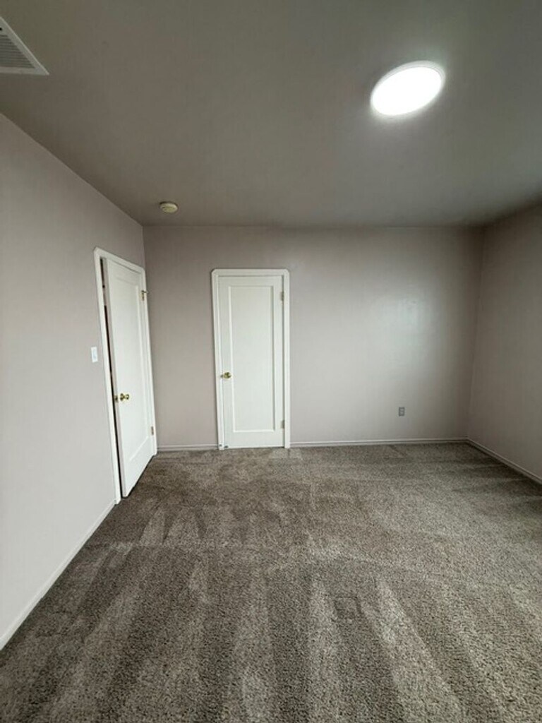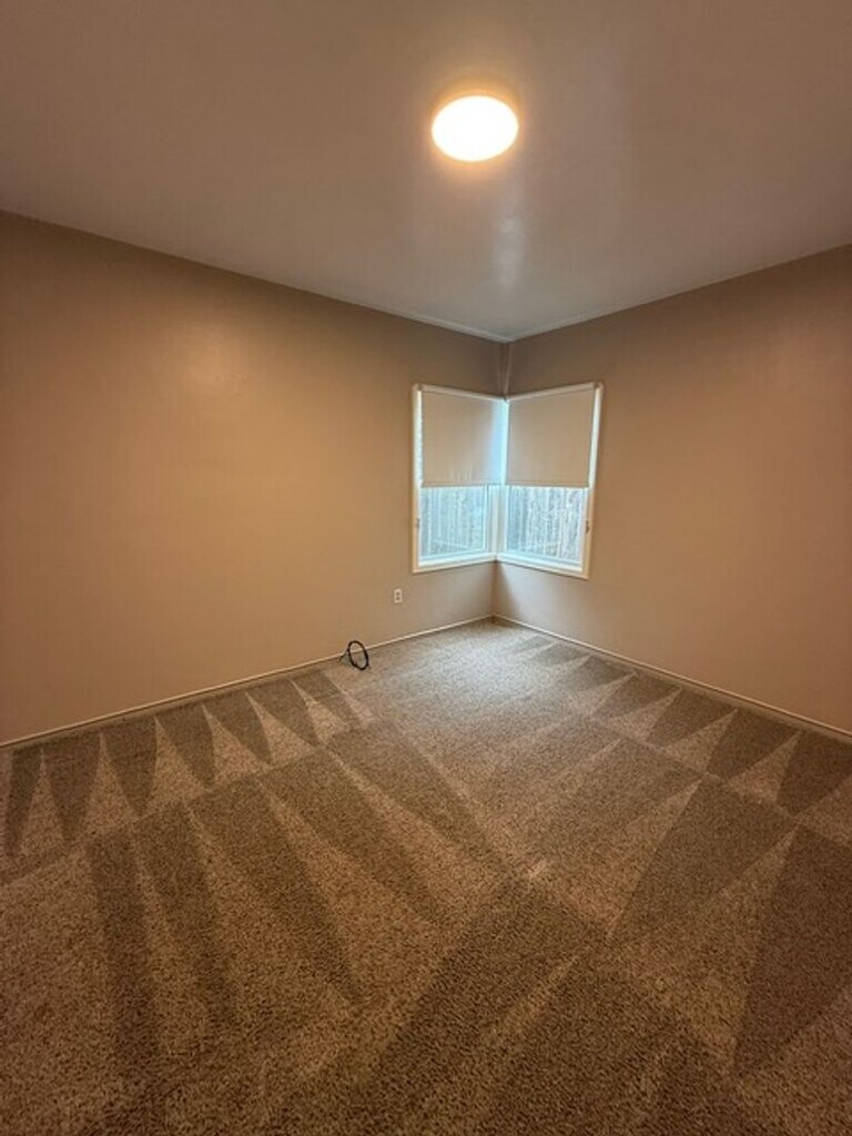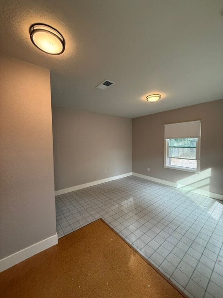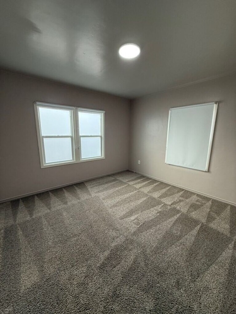 This Single-level home offers 3 bedrooms and 2 bathrooms. Upon entry, you’ll find a bright living room featuring original hardwood floors, a large picture window, and custom molding. The fireplace is for looks only and is not to be used. The kitchen is well-equipped with a gas stove, refrigerator, and ample cabinet space. Just off the kitchen is a cozy dining area with original built-in cabinetry. Two carpeted bedrooms are located toward the front of the home and share an updated full bathroom. The primary bedroom is situated at the back of the house, offering added privacy. Additional features include forced heating and air conditioning, a dedicated laundry room with a stackable washer and dryer provided, and a large backyard with a detached garage. Landscape service is included. Small pet negotiable. Sorry, no co-signers. One-year lease.