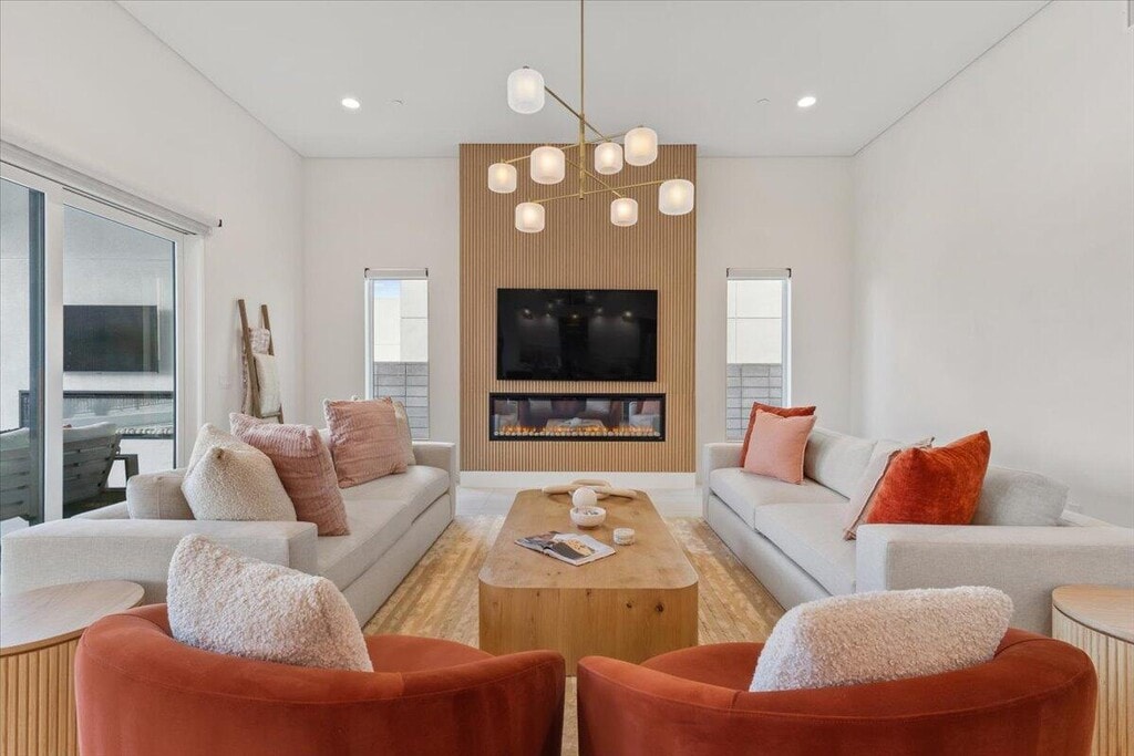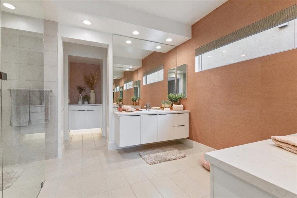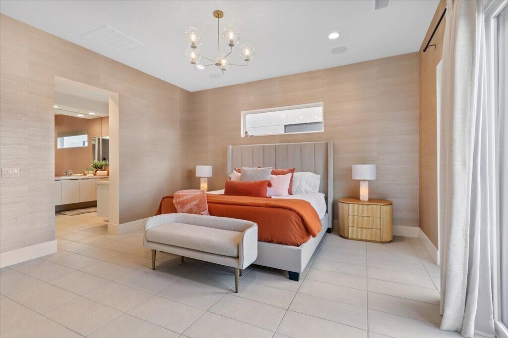 Located in the gated community of Miralon in Palm Springs,this modern home offers resort-style living with a spacious open-concept design,tile floors throughout,and expansive mountain views. The primary suite includes an en-suite bathroom with a walk-in shower and dual vanities. The kitchen is equipped with high-end appliances,a large pantry,and an oversized island,opening to the great room with a sliding glass wall for seamless indoor-outdoor living. Each bedroom provides direct access to the yard,creating a strong connection between indoor and outdoor spaces. The backyard is designed for relaxation and entertaining,featuring a covered patio,pool,and spa. Residents of Miralon enjoy a variety of amenities,including heated pools,a spa,fitness center with Peloton bikes,yoga studio,bocce courts,U-pick gardens,dog parks,a community chef's kitchen,and an on-site café and bar. Conveniently located near downtown Palm Springs and major highways,this home combines comfort,luxury,and accessibility.