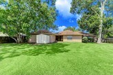 Spacious home on 1/3 of an acre w/ BONUS Flex Room OR Guest Suite w/ wonderful skylight & separate entrance. Currently serves as the children's playroom. Excellent layout with formal LR & DR connected to ample Kitchen/Breakfast area and Family Room. Main & Flex rooms boast beautiful wood custom cabinetry. Lots of natural light throughout w/ ceiling fans in every room. Large primary BDRM w/ sitting area and ensuite bath including jetted tub and walk-in closet. Garage connects to utility room via protected covered patio. Oversized backyard w/ storage shed and room for a pool or soccer game! Never flooded. Easy access to Hwy 288 & 2004 and all Lake Jackson shopping. Walking distance to Shy Pond. Very close to top-rated Bess Brannen Elementary and LJ Intermediate schools. MUST SEE to appreciate all this home has to offer.