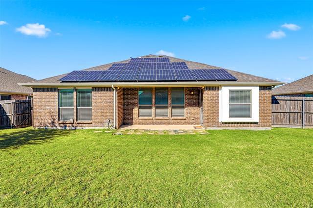 Charming 3-Bedroom Home Near Lake Lewisville Just two blocks from Lake Lewisville, this beautifully maintained 3-bedroom, 2-bath home offers the perfect mix of comfort, style, and convenience. Step inside to find an open, light-filled layout with wood flooring in the living areas and hallways, complemented by tall windows that fill the home with natural light. The kitchen features rich wood cabinetry, granite countertops, stainless steel appliances, a gas range, and a breakfast bar that opens seamlessly to the living and dining spaces — ideal for entertaining or family gatherings. The split floor plan provides a private primary suite with a tray ceiling, spacious walk-in closet, and a bright ensuite bath with dual vanities and a walk-in shower. Secondary bedrooms are generously sized and share a full bath with updated finishes. Enjoy evenings outdoors on the covered patio overlooking a large, fenced backyard — ideal for relaxing or entertaining. Solar panels help keep utilities low, and the home’s location near ElDorado Parkway puts shopping, dining, schools, and the lake all within easy reach. Fridge, washer and dryer included!