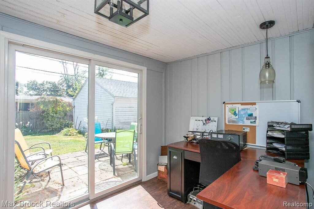 Open and spacious ranch with remodeled kitchen and main floor, laundry and mud room on a charming corner lot. Large sunny windows, hardwood floors, charming fireplace and private office with a door wall provides a great place to work or can be used as a 3rd bedroom. The large mud room has laundry, great built-in cabinetry for storage and a charming half bath/powder room. Two nice sized bedrooms have wood floors, sunny windows and large closets. The fully fenced private backyard is charming, with a patio from the sliding doors off of the office, and a 2 car garage. $250 cleaning fee. 1.5 months security deposit. Additional pet fee if applicable. Please complete application.