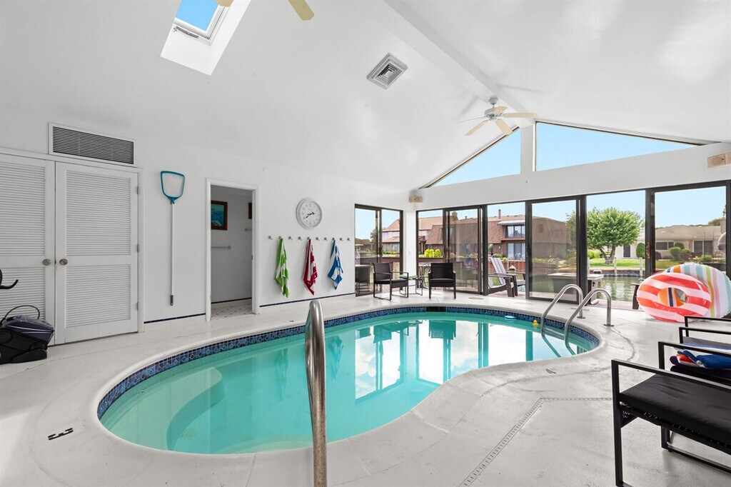 Welcome to your luxurious oasis on Belvidere Bay in Boat Town USA. This exquisite two-story home features an indoor heated pool, four spacious bedrooms, and four bathrooms (two full and two half), nestled in a serene suburban setting. Just a 9-minute drive or short boat ride from the picturesque Lake St. Clair, this property seamlessly blends tranquility and convenience, making it the perfect retreat for both relaxation and outdoor activities. Indulge in fishing, cozy outdoor fire pits, and a fully equipped BBQ grill and dining area, perfect for grilling after a day in the water. Inside, a year-round heated indoor pool awaits, complete with floaties for ultimate relaxation and fun. The open concept living area boasts a modern look, inviting everyone to unwind with loved ones and cook in the kitchen. Serve delicious homemade meals on the dining table nestled by the solarium and pond that lets in natural sunlight, creating a pleasant setting to enjoy with family and friends. This pet-friendly home welcomes your furry friends with a $200 fee per pet. Non-approved pets will incur a $500 fine, and failure to disclose pets may result in the cancellation of your booking without a refund. Parking is available for a maximum of four cars in the driveway, with no street parking allowed. Discover the perfect blend of tranquility and convenience. Nestled in a peaceful neighborhood, this property is just 5 minutes from the stunning Lake St. Clair, offering endless opportunities for boating, fishing, and waterfront dining. Enjoy the friendly community, local parks, and nearby amenities, with Lake St. Clair Metropark only 10 minutes away. For urban excitement, downtown Detroit is a mere 30-minute drive, providing world-class dining, shopping, and entertainment. Smoking is only allowed outside, with a $1000 fine for smoking inside the unit. Quiet hours are from 9 PM to 8 AM daily, and noise complaints will incur a $250 fine. Please do not move furniture, as a $250 fine will apply if furniture is moved from its original position. Check-out time is 11 AM, with a $250 fee for late check-out after 11:15 AM. An excessive cleaning fee of up to $250 may apply for dirt, mud, or stains on floors or rugs. There are cameras surrounding the entire exterior of the home, with no video cameras or recording devices inside the home. A team member will drop by every Monday to check and balance the pool chemicals, adding any needed chemicals to ensure proper maintenance. This property is a haven for water lovers, offering a range of activities including boating, fishing, kayaking, and waterfront dining at nearby marinas and restaurants. The lake's natural beauty and vibrant recreational opportunities make it a cherished destination for both residents and visitors alike. [SI]