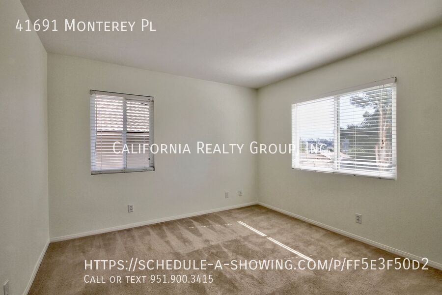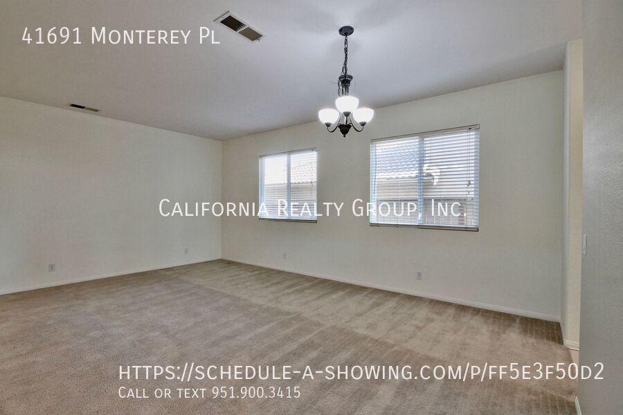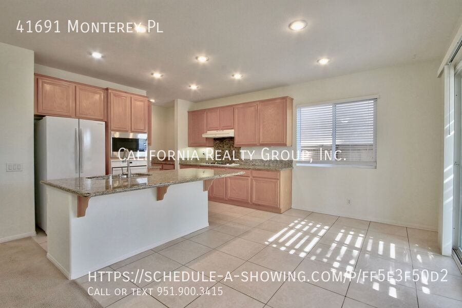There is currently a 3 Bed 3 Bath Home for rent with 2,724 sq ft listed at 41691 Monterey Pl. It is Available March 16, 2026.