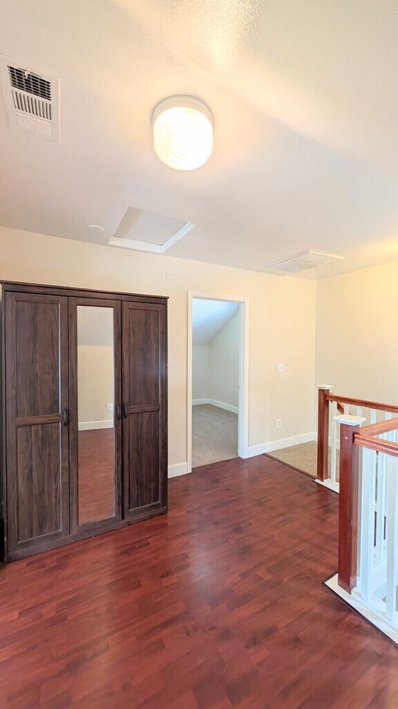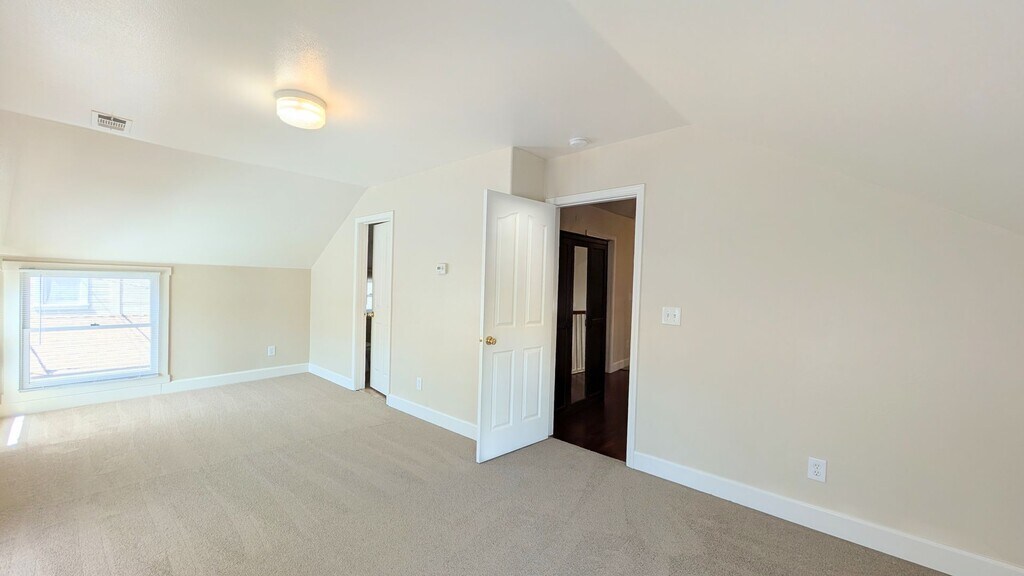 This landmark residence features laminate floors, granite counter tops and cherry wood cabinets in the spacious kitchen across from the living room. 2 bedrooms and 1 full bathroom downstairs. Upstairs you have a full bathroom connected to the master bedroom and a smaller bedroom/office. Central heat and A/C with dual zone climate controls. The driveway is secured by an iron gate. Property includes stand alone closets. You can find more info on our website Thanks for checking us out!