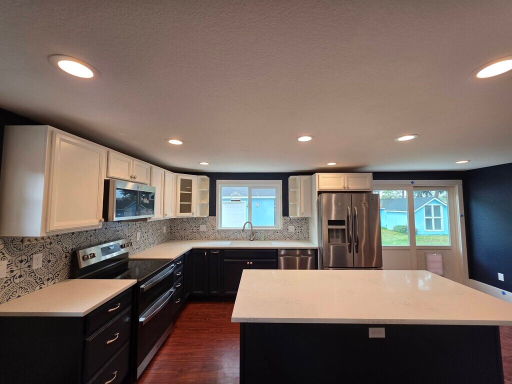 REMODEL WRAPPING UP!!! SCHEDULING SHOWINGS TO PRE LEASE FOR NOVEMBER MOVE IN. Beautifully Updated 4-Bedroom Home in Richland – Remodel Nearly Complete! Available November 5th This spacious Richland home is currently in the final stages of a full remodel and will be move-in ready by November 5th! Showings are available now for those eager to secure this beautifully updated property early. Located near convenient 240 highway access for an easy commute to surrounding areas including Hanford and PNNL, this home combines comfort, functionality, and modern design. Featuring 4 bedrooms, 1 bathroom, 1800 sq feet of living space and a large 2-car garage, plus bonus outdoor building with electrical, this home has been thoughtfully updated throughout. The main living areas feature laminate flooring, while the bedrooms are carpeted for comfort. The living room is oversized and bright, with large windows overlooking the front porch, updated LED lighting, and an open layout that flows seamlessly into the dining area and remodeled kitchen. The kitchen is a true highlight, featuring all new cabinetry, quartz countertops, a large island with bar seating and additional storage, and stylish two-tone cabinets — white uppers and dark blue lowers — accented by a coordinating tile backsplash. A built-in bar area with extra outlets and storage makes for the perfect coffee or wine bar. The kitchen also includes a second dining area and all major kitchen appliances. The primary bedroom is a spacious addition to the home, offering double windows, a large walk-in closet with built-in shelving, and its own mini-split for independent heating and cooling. It's located off the kitchen, offering privacy from the other bedrooms. The remaining three bedrooms are located off the living room, one with a walk-in closet, and share a full hallway bathroom. The oversized laundry room off the kitchen includes full-size washer and dryer hookups and plenty of storage space. Enjoy the fully fenced backyard with in-ground sprinklers, mature landscaping, and double gates that lead to the oversized 2-car garage. The backyard backs up to a greenbelt and walking/biking path, providing a peaceful outdoor setting and added privacy. There are two additional outbuildings — one that houses the irrigation system and another fully finished building with electricity, drywall, and a large window — perfect for a craft room, home office, or hobby space. The front yard offers beautiful mature trees, raised garden beds, and a relaxing front porch sitting area. Rental Details: Available November 5th for move in Showings available now Tenants responsible for all utilities and landscaping Pet friendly upon owner approval with additional rent and/or fees One-time administrative fee of $150 due at move-in Only available through KeyOne Property Management. Contact us today to schedule your showing!