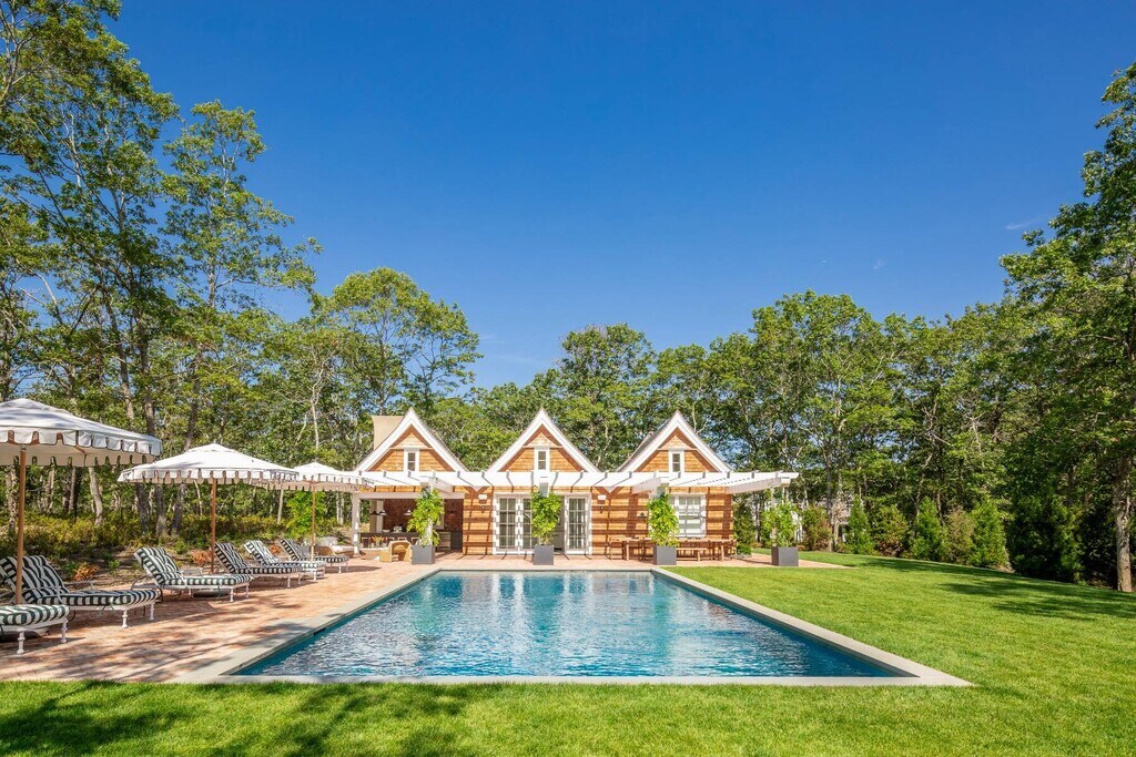This exceptional new 7000+/- sq.ft. home, sited on over 3 acres with pool and over-sized pool house/pavilion is now ready for its first tenants. Several distinct and superbly-designed living spaces are perfectly suited for gathering and entertaining family and friends. Constructed by a well-known local builder, this custom-designed home offers seven bedrooms, eight full, and two half-baths between the main residence and pool pavilion. A private drive leads to the shingle-sided Hamptons home with circular drive, and separate service drive to the garage bays. The residence opens with an elegant, double-height ceiling off of which is the powder room, and direct view to the comfortable living room with fireplace. The living room is part of the open-plan living/dining/kitchen, all with superb finish and luxe furnishings. The fully-equipped chef's-level kitchen includes a Fisher Paykel refrigerator, beverage cooler, Bertozzi range/oven, microwave/convection oven, and two dishwashers. The separate formal dining room will seat 8-10 persons. French doors line the entire rear of the house, including the first floor junior primary suite with fireplace, off of which are two covered patios, and outdoor fireplace. From the second floor landing, the primary suite occupies one side with French doors out to its private deck. A sitting area and three more bedroom suites complete the second floor. The finished lower level offers a media room, a sixth bedroom suite, a full bathroom, an additional bedroom, the laundry room with double washer/dryers, and access to the over-sized two-car garage. Among the amenities offered: in-home and outdoor surround sound systems; black-out shades; WiFi; four Eisyrood "cruiser" bicycles, and an Addmotor electric tricycle. Lower level storage closets contain a surplus of labeled luxurious linens for the household. A landscaped glade leads up to the pool area, with its in-ground, 20'x40' heated Gunite pool with bluestone surround and six Euro-style lounges and three "Cape" umbrellas. The outdoor entertaining areas offer a "pizza" kitchen with a Green Egg, and an under-pergola dining area that will accommodate a dozen people. Inside the pool house, a large kitchenette, half bath, and separate changing room. This is a property where every day feels like a retreat and every evening is an invitation to unwind. Offered for various time periods this summer and off-season. [[Rental Registration # Pending]] Rental Terms: Other / Short Term - Year Round: $550,000 June/July: $250,000 January: $15,000 November: $15,000 February: $15,000 April: $15,000 Two Weeks: $85,000 July: $150,000 October: $15,000 March: $15,000 June: $100,000 May: $45,000