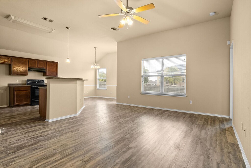 **NOW OFFERING $500 OFF FIRST MONTH'S RENT - MOVE-IN SPECIAL** Welcome to 417 Emerald Ridge, a stunning 3-bedroom, 2-bathroom home located in the vibrant city of Temple, TX. This home boasts an array of modern amenities and features that are sure to impress. The open floor plan is accentuated by wood and vinyl plank flooring, creating a seamless flow throughout the home. The kitchen is a chef's dream with a range and dishwasher, and the convenience of dining in. The home is bathed in abundant natural light, enhancing the modern light fixtures and ceiling fans. The 2-car garage provides ample storage and parking space. Step outside to the back patio, perfect for entertaining or simply enjoying a cup of coffee. The patio is covered, providing shade and comfort during those hot summer days. The yard is equipped with a sprinkler system and is enclosed by a privacy wood fence, offering a sense of seclusion. Experience the perfect blend of comfort and style at 417 Emerald Ridge.