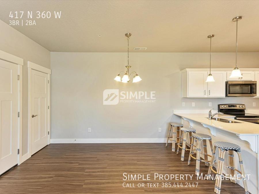 There is currently a 3 Bed 2 Bath Condo for rent with 1,233 sq ft listed at 417 N 360 W. It is Available May 1, 2026.