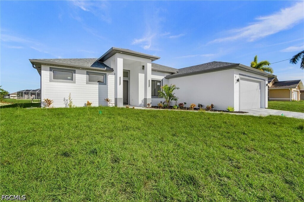 Are you looking for a pet friendly home? Welcome to 417 SW 23rd Ter!!! Located right in central Cape Coral! Come see this beautiful new construction waterfront home sitting on a beautiful canal. This plan offers 2009 sq. ft. under air with a lanai and a 2 car garage for a total of 2776 sq. ft.! This home features a split floor plan of 4 bedrooms,3 bathrooms,2 car garage,high ceilings,shaker cabinets,granite countertops and tile throughout. Large master suite with tray ceiling,2 walk in closets,his and hers vanities with a walk in shower. Very high quality hurricane impact windows and doors throughout. Laundry room with washer/dryer hookups. Covered lanai perfect for adding your own summer kitchen that overlooks the beautiful canal. Stop on by and see your next home where the builder spared no costs! Very close to restaurants,schools and parks. Easy access to I-75 and Fort Myers! Call today to see this amazing home!!!