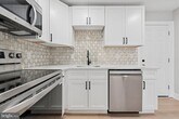 Available now! This stunning 2-bedroom, 2-bath, 2-story apartment offers a modern, upscale design that’s sure to impress. The open floor plan features LVP flooring throughout and a sleek kitchen with bright white shaker cabinets, a chic deco backsplash, and white quartz countertops. Stainless steel appliances including an electric stove, dishwasher, built-in microwave, and refrigerator complete the space. The first full bath on the main floor boasts tile flooring, a shower with stone tile floor, marble tile walls, and both rain and detachable handheld shower heads. You’ll also find a storage area with a stackable washer and dryer, plus a spacious living room with recessed lighting and two windows. Upstairs, both bedrooms have barn-style double-sided closets and share access to a full bath with modern white tile floors, an oversized walk-in shower with a pebble stone floor, serene blue wall tile, and dual shower heads. With ample street parking and a prime location near Conshy’s amenities and public transportation, this home is a must-see. Agent is related to the owner—schedule a tour today!