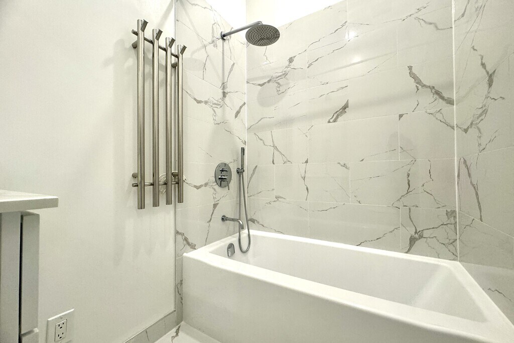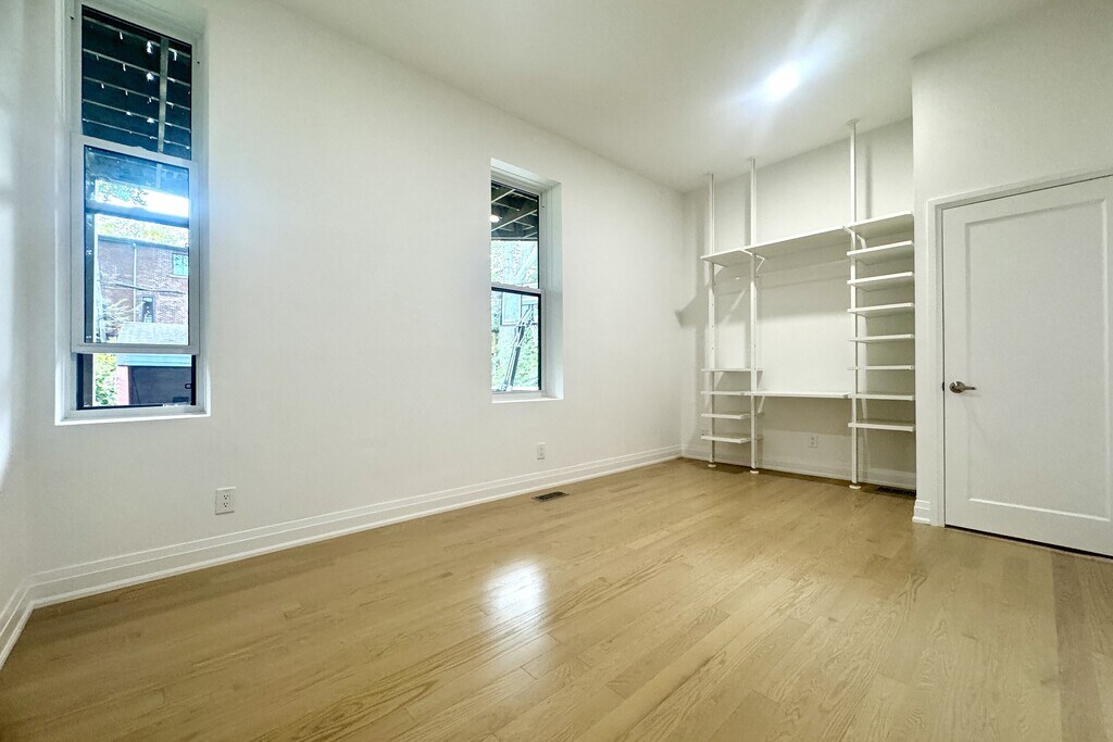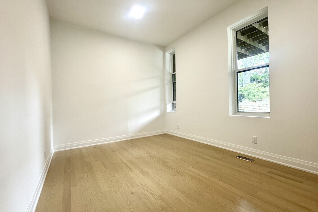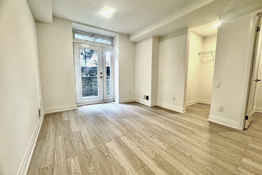 Be the first to call this lovely two-level, two-bedroom residence home. Set within a beautifully restored heritage property, this thoughtfully newly renovated suite combines timeless architecture with refined modern design. The main level features a gracious open-concept living area with soaring ceilings, rich hardwood floors, and expansive windows, a sleek gas fireplace anchors the room, adding warmth and ambience. The contemporary kitchen is appointed with porcelain flooring, stainless steel appliances, and a full complement of premium finishes. The lower level offers high ceilings, luxury vinyl plank flooring, a generous closet, and a spa-inspired bathroom. From here, step out to your private stone terrace. Additional features include exclusive ensuite laundry, one-car parking, and efficient on-demand hot water. Set within a well-managed triplex on a tranquil, tree-lined street, this home is just a short stroll to Bloor Street's cafés, boutiques, and subway access. Utilities are individually metered for convenience and control.
