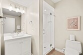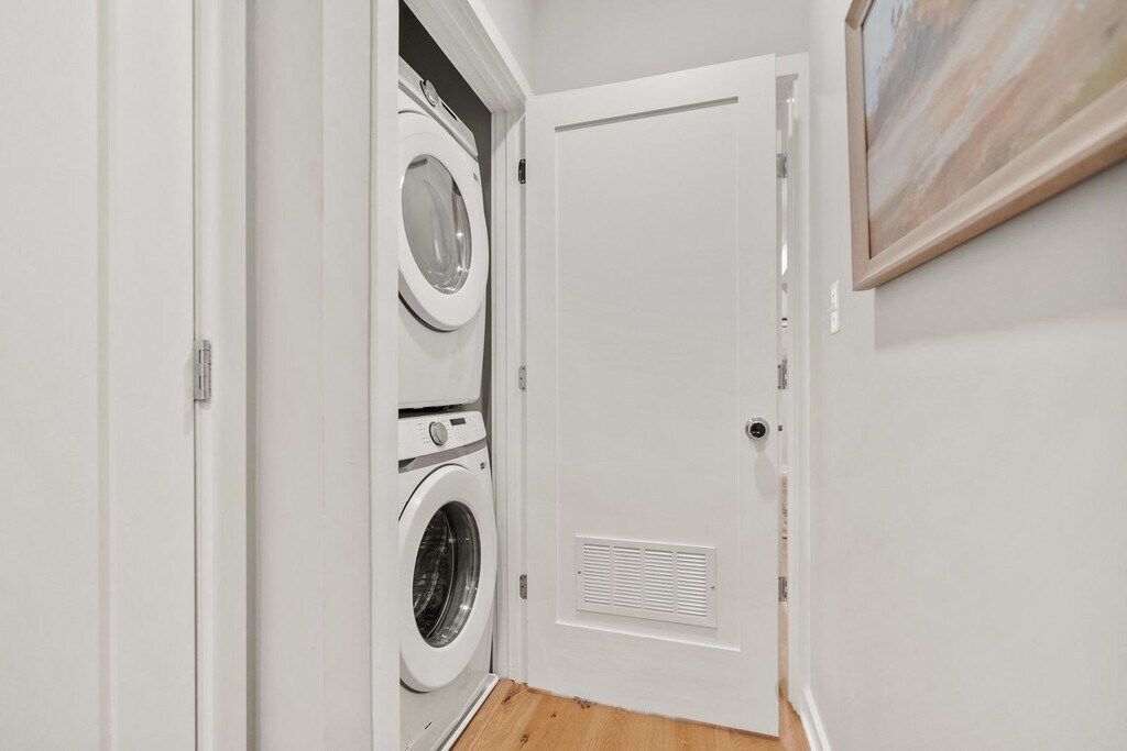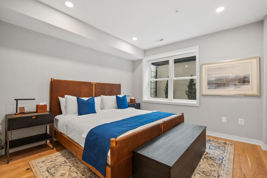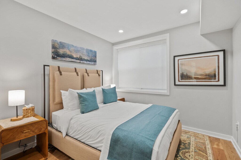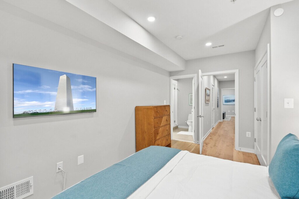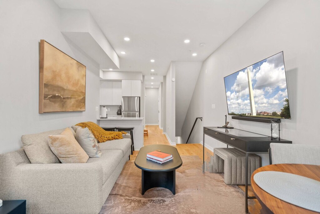 Feel at home in this newly built, fully furnished 3-bedroom, 3-bathroom apartment located on the ground floor of a 2-unit, 4-level townhouse in the Historic Capitol Hill District. The kitchen is equipped with top-of-the-line Samsung appliances, including a convection oven with a food dehydration function, custom J Suss cabinetry, and quartz countertops. China, crystal, pots, pans, baking and eating utensils are neatly arranged in your kitchen cabinets and drawers. The apartment features wide plank hickory oak flooring throughout. Each toilet is equipped with a bidet for added hygiene and comfort. Hair dryers are provided in each bathroom. A full-size washer and dryer are included for your laundry needs. A Ninja blender and Cuisinart appliances, including a coffee maker with a carafe, are available. Situated on a charming, quiet street, this apartment is just a three-block stroll from the bustling Eastern Market, Metro, Trader Joe's, restaurants, coffee shops, and endless conveniences. Reagan Airport is just a 7-minute drive away. Enjoy a 97% walking score, reflecting the high accessibility to essential and leisure destinations all within 2-5 blocks. Two Metro stations are within walking distance, providing excellent connectivity across the city. The major DC South and North bike lanes (4th and 6th Streets) are only a block away. Multiple restaurant rows featuring a variety of cuisines are nearby, as are Trader Joe's, Whole Foods, CVS Drug Store, Sephora, book stores, galleries, hair and nail salons and a hardware store. Multiple parks provide green spaces for relaxation and recreation. UPS, FedEx, and the Post Office are easily accessible for all your mailing needs. Seven gyms in the vicinity cater to various fitness routines and regimes. Proximity to Federal Buildings, the Capitol, Library of Congress, Canon House Office Building, Rayburn Office Building, and Longworth House Office Building. A short stroll takes you to the Mall museums, including the Air and Space Museum, Smithsonian National Museum, National Gallery of Art, and the United States Botanic Garden. This is one of the safest neighborhoods in Washington, with a police station just over a block away and an extensive security system installed. The living room is designed for both relaxation and productivity, featuring a second desk and a highly rated OLED big screen TV. The designer bedrooms offer comfort and functionality with a desk. Stay connected with high-speed mesh Wi-Fi. Parking is available for an additional $10 per day [SI]