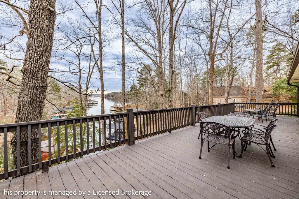 Enjoy lake living in this beautiful 3 bedroom, 2 bathroom home located in the desirable Woodrun community on Lake Tillery. The home features spacious decks on both levels, both furnished with plenty of tables and chairs—perfect for relaxing, dining, and entertaining while taking in the serene surroundings. A convenient walkway leads directly to the boat dock, making boat lodging easy and accessible. The dock also offers lounge chairs for enjoying time right on the water. Inside, the kitchen boasts a marvelous lake view through large windows and sliding glass doors that flood the home with natural light and showcase the lake just beyond. Brightspeed internet is included in the rent, providing reliable high-speed connectivity for work or streaming. This home offers the perfect blend of comfort, convenience, and scenic lakefront living.