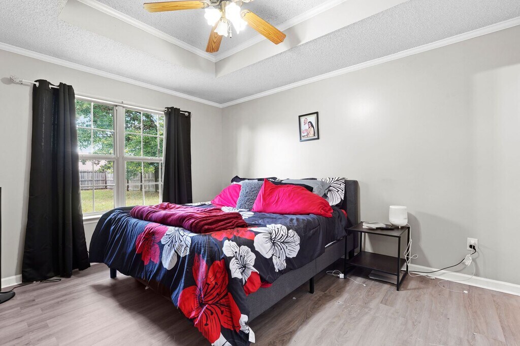 Charming 3 bed, 2 bath brick single-family home featuring a spacious living room with an elegant tray ceiling and abundant natural light. The open kitchen offers solid wood cabinets, newer stainless steel appliances, and flows seamlessly into a separate dining room—perfect for entertaining. Enjoy easy-care living with newer LVP flooring throughout and no carpet. The home also includes a one-car garage and a large fenced backyard with an uncovered patio, ideal for relaxing or outdoor gatherings. Conveniently located near shops, dining, and just a short drive to Fort Stewart, this home combines comfort, style, and durability. Pets considered on a case-by-case basis. Property has solar panels to reduce overall cost of electricity.