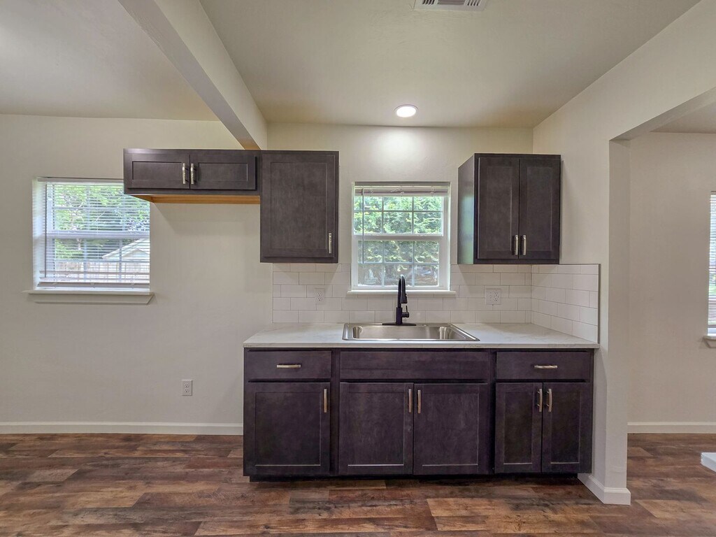 Welcome to this charming bungalow-style home, recently updated with stylish wood-like flooring throughout, offering a perfect blend of classic charm and modern convenience. As you step inside, you'll be greeted by the warm and inviting ambiance of the open-concept living space, enhanced by the rich tones of the wood-like flooring. This cohesive flooring seamlessly connects the living areas, creating a sense of flow and continuity throughout the home. The heart of the home is the well-appointed kitchen, ample cabinet space, and sleek countertops. Whether you're whipping up a gourmet meal or enjoying a casual breakfast, this kitchen provides the perfect backdrop for culinary creativity. This cozy abode boasts 2 bedrooms, each offering comfort and privacy for peaceful nights of rest. There is another room that could be used as a 3rd bedroom or office space, it does not have a closet. The bathroom has also been thoughtfully updated, featuring contemporary fixtures and finishes, providing both style and functionality for your daily routines. Outside, the bungalow's classic exterior exudes timeless appeal, with a front porch perfect for enjoying your morning coffee or greeting neighbors passing by. The spacious backyard offers ample room for outdoor activities, gardening, or simply soaking up the sunshine. This updated bungalow offers the perfect blend of comfort, style, and functionality. Lease Information: Appliances included: Range Utilities: City of Shawnee- Water/Trash/Sewage | OG&E- Electric | ONG- Gas Move In-Ready- February 10th, 2026 Tenants are responsible for lawn care and utilities. Pets are considered case by case with a non-refundable pet fee. Pet Fee is per pet! Leases are 12-Months long! (1 year) No Smoking! Application fee is $50 per applicant and all applicants over 18 must complete an application. Security Deposit starts at an amount equal to 1 month's rent. **DO NOT CONTACT US THROUGH ZILLOW** For the best service, text us at - this is a text only number. By choosing a professionally managed rental home by Berkshire Hathaway- Benchmark Realty, you'll enjoy personalized services such as our all-in-one resident portal, dedicated- local management team, online rental payments, quick- maintenance program. Most Berkshire Hathaway- Benchmark Realty homes are pet-friendly (pet fees and breed restrictions apply). Visit our website to apply online, review qualification criteria and search additional homes; or contact our leasing team for more information. Don't delay, as our homes rent quickly! Please be aware of scams. Berkshire Hathaway- Benchmark Realty does not advertise on Craigslist, or any other classified advertising websites. We will never ask you to wire funds. Applications and lease signing are completed through our website only.