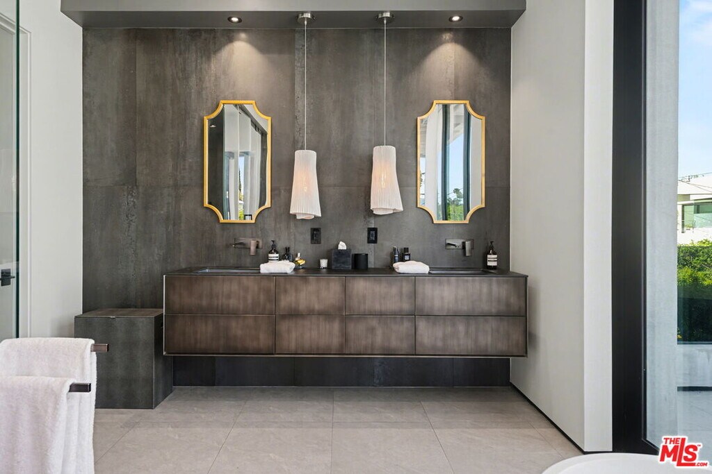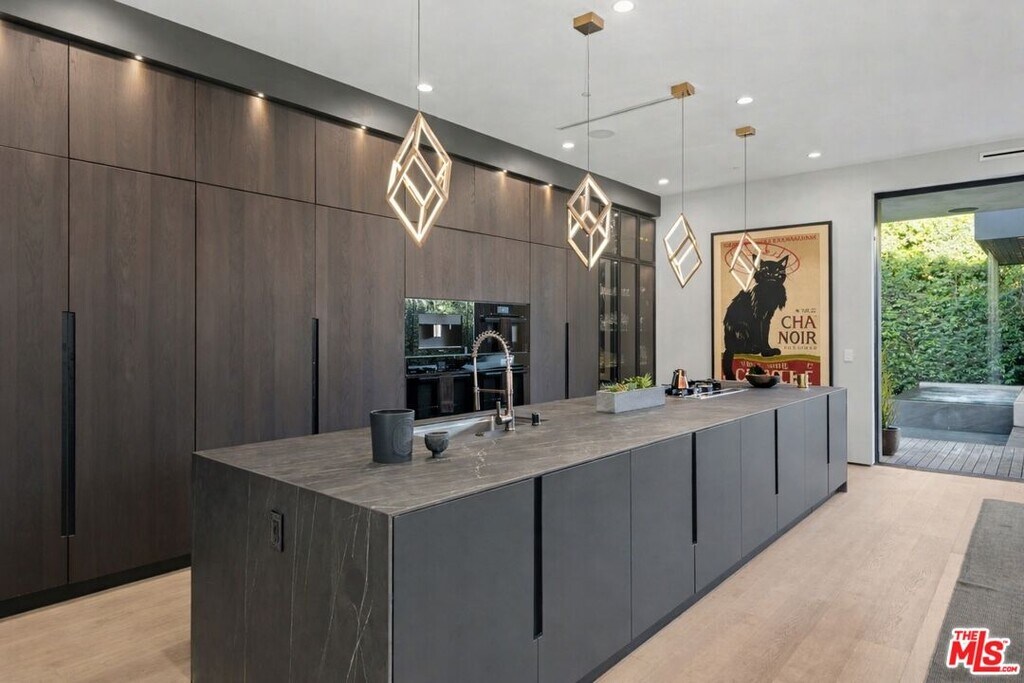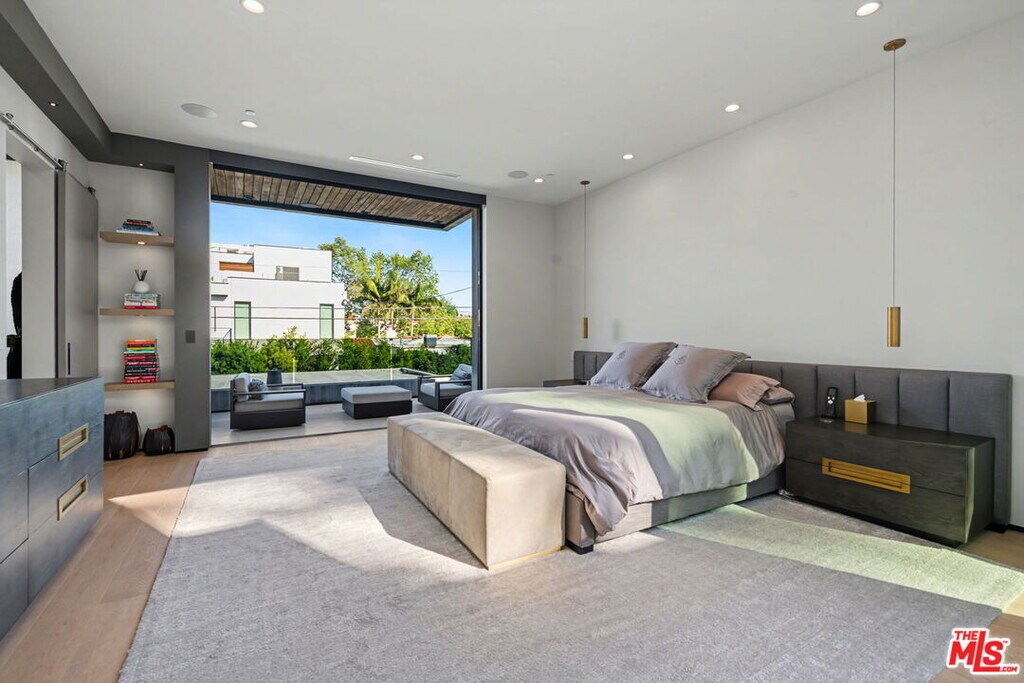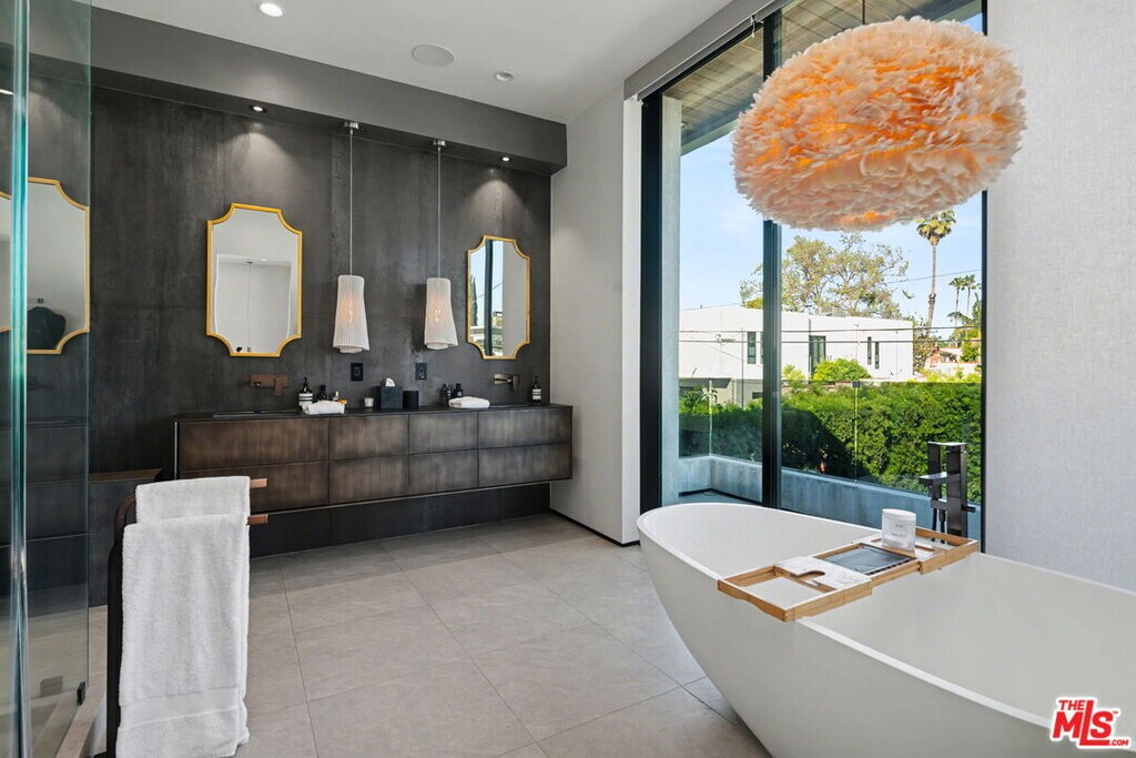 Newly built, gated architectural home with an elevator and approximately 2,000 sq ft of outdoor space, including a professionally designed rooftop deck with a fire pit and views of the Hollywood Hills. Conveniently located near Beverly Blvd, Melrose Ave, and Santa Monica Blvd. and situated between the Grove and the Beverly Center near West Hollywood. The home features an open floor plan with large Fleetwood sliding doors that connect the main living areas to multiple balconies and decks. The kitchen is equipped with top-of-the-line Miele appliances, including a Miele refrigerator and gas stove, along with a large center island that opens to the living and dining areas. The backyard includes a pool and hot tub with water features, cabana, a fireplace, and space for outdoor entertaining. The primary suite offers a spacious walk-in closet, dual shower, spa-style bath, and two private balconies including an outdoor fireplace. Additional features include a home theater, gym, recreation area with wet bar, smart home system, two-car garage with EV charger, and additional gated parking. Rent includes weekly pool service, weekly housekeeping, bi-weekly gardening, and all TVs. Property will be delivered unfurnished. MLS# 26667795