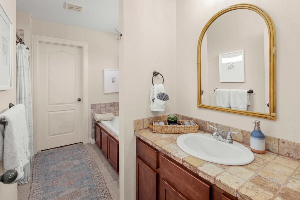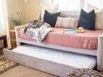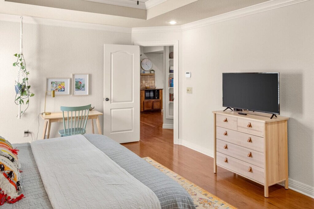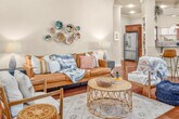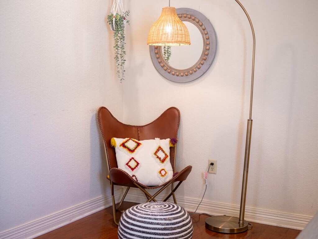 Nestled in a serene neighborhood, this charming home offers a relaxing escape with two spacious bedrooms and two full bathrooms. Enjoy the bright sunroom, perfect for morning coffee or unwinding with a book, and take advantage of the private carport for easy parking. Experience a peaceful retreat where thoughtful design meets ultimate comfort. This home, professionally designed by Kathryn J. LeMaster Art & Design, features two inviting bedrooms with plush bedding, modern bathrooms with high-quality finishes, and a sophisticated living area for relaxing or planning your adventures. The fully equipped kitchen is ready for your culinary creations or enjoying takeout from Fayetteville’s best. A tranquil outdoor area allows you to unwind and take in the fresh air after a day of exploring. Up to two housebroken dogs are welcome to join your stay for an additional fee of $75. The property includes cable television and a smart TV for your entertainment. The home is fully stocked with essentials to make your stay enjoyable and stress-free. Located in a quiet and peaceful Fayetteville neighborhood, this retreat is perfect for guests seeking a serene getaway with easy access to local attractions. The University of Arkansas is just 15 minutes away, and the Botanical Garden of the Ozarks is only 10 minutes away. Downtown Fayetteville, with its local shops, restaurants, and nightlife, is just 12 minutes away. Enjoy the Razorback Greenway, Lake Fayetteville, and Bud Walton Arena, all within a short drive. Quiet hours are from 9:00 PM to 8:00 AM. No smoking or vaping indoors; smoking is permitted outdoors only. No parties or events without prior approval. Dogs are allowed with a maximum of two pets, and a $75 pet fee applies. Keep dogs off furniture and clean up after them. Maximum occupancy is six registered guests. Children are welcome, but please supervise young children. [SI]