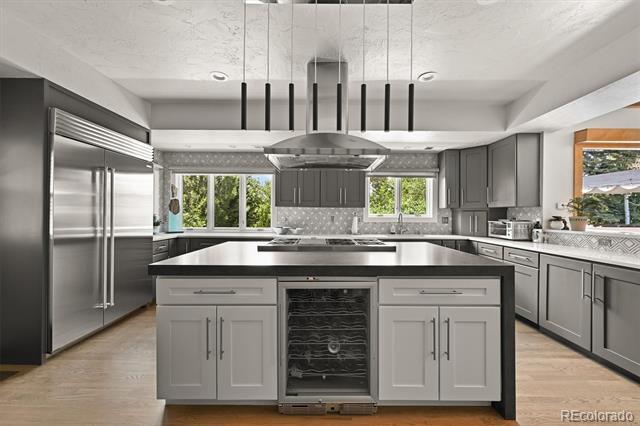 Set on a prominent corner in sought-after Cherry Hills Village, this residence offers a rare balance of scale, design, and livability. Spanning more than 7,500 square feet with 6 beds and 6 baths, the home unfolds with intention—elevated design for both everyday comfort and entertaining. A dramatic 20-foot entry gallery opens to a light-filled great room with a refined gas fireplace. Expansive NanaWall doors create a seamless connection to the wraparound Fiberon terrace, where curated landscaping, mature trees, and layered outdoor spaces come together. A pergola, firepit, Bocce court, water feature, and grill area create a setting suited to gatherings or quiet evenings. The kitchen, updated in 2022, anchors the main level with custom cabinetry, a Sub-Zero refrigerator, walk-in pantry, and breakfast area. At the front of the home is a spacious, private office. A main-floor bedroom suite with a luxurious bathroom and patio access offering flexibility for guests. Upstairs, the primary suite is set apart, offering a sense of retreat with dual walk-in closets, a spa-inspired bath with natural stone finishes, a soaking tub, fireplace, and a Juliet balcony with mountain views. A tucked-away office or reading lounge adds versatility. The upstairs also offers 2 secondary bedrooms with a jack and jill bathroom. The lower level is a walkout with french doors to the back patio. It also offers a reimagined wine cellar, acoustic-engineered theater, an equipped fitness room—opening to outdoor kitchen, dining and lounge areas. There are two bedrooms each with an en-suite bathroom. A full laundry room and generous storage complete the home. Positioned near the High Line Canal, Cherry Creek, and the Denver Tech Center, and within the Cherry Creek School District, this home delivers both presence and ease. Single Family Residence MLS# 5057462
