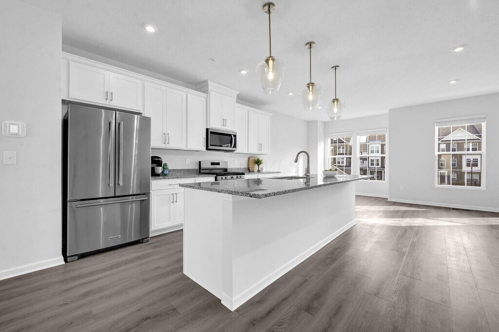 Located just moments from the popular amenities,dining,and shopping of Bridge Park and Dublin,this thoughtfully designed 3-bedroom condo seamlessly blends elevated living with everyday functionality. Upon entry,you are welcomed by tall ceilings,abundant natural light,and a spacious main-level flex room that is ideal for a home office or secondary living area,complete with a half bathroom and direct access to the attached 2-car garage. Heading up to the second floor,the open-concept layout is built for entertaining,featuring a fully equipped kitchen with stainless steel appliances,a large center island,and a living room that opens onto a spacious private deck perfect for relaxing afternoons. To finish off this beautiful property,the third-floor private quarters offer a primary owner's suite with a walk-in closet and dual vanities,along with two additional bedrooms,a full guest bathroom,and a conveniently located laundry space.