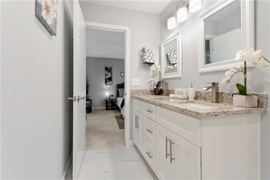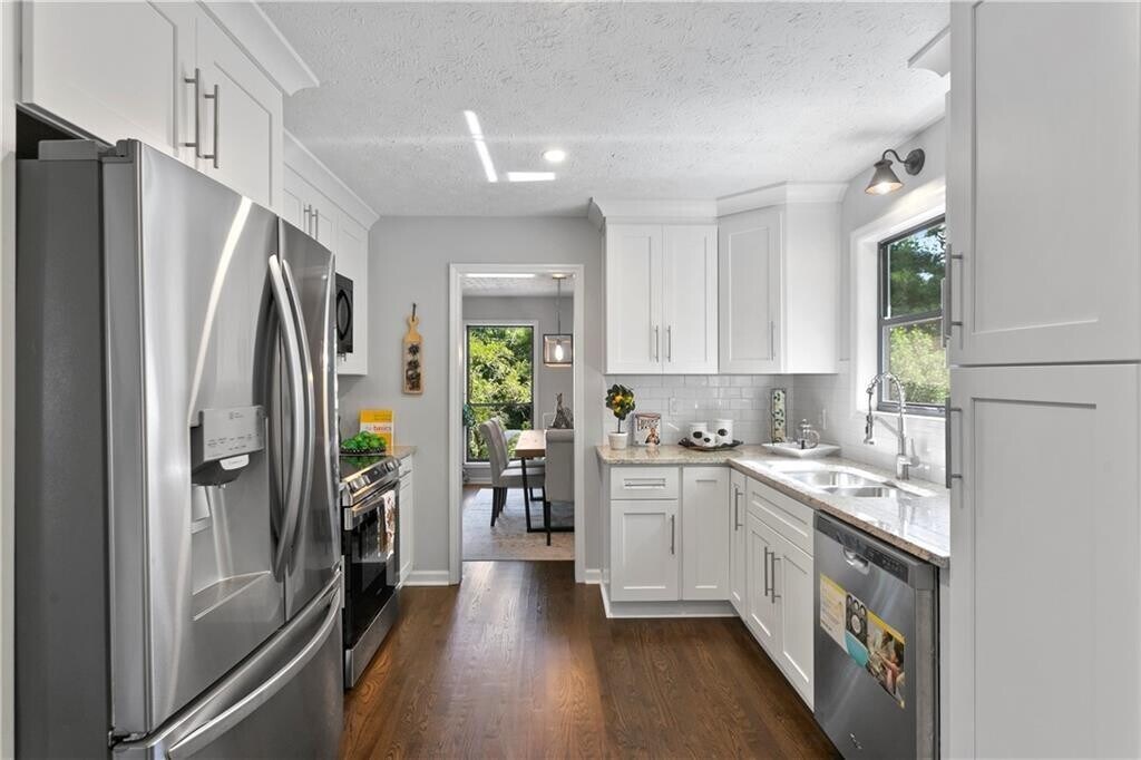 Amazing Roswell Home with Top Rated East Cobb Schools. Spacious Modern Contemporary Style Renovated 4 Bedroom,3 Bath home has Beautiful Hardwood Floors throughout with Updated Bathrooms. Renovated Gourmet Kitchen has New White Cabinets,Granite Countertops,Subway Tile Backsplash with Sleek Stainless Steel Appliances. Great Room has Vaulted Ceilings with Fireplace and Access to the Deck overlooking the Private Natural Backyard. Primary Suite has an ensuite Primary bath with Double Vanities,Tiled Shower and a Luxurious Soaking Tub. Generous Sized Bonus Room with a Full Bathroom is located on the Terrace Level. Great Location conveniently located to Shopping,Restaurants,Highway 92,and Sandy Plains Road. Welcome Home. MLS ID 7698373