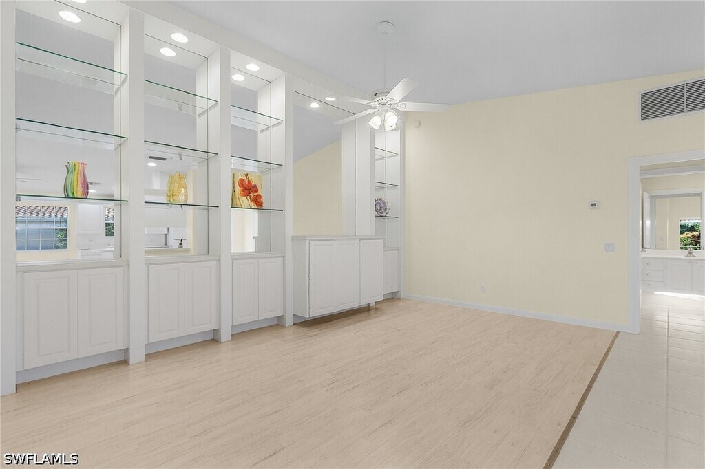 Live the dream! Gorgeous villa in beautiful Island Walk with every amenity you could want and more! Freshly painted,vaulted ceiling,tile flooring,large kitchen,floor to ceiling built-in wall unit,newer appliances,full size washer & dryer,ceiling fans,lanai with private back yard,two car garage with your own golf cart. Island Walk's amenities include resort & lap pools,tennis and pickleball courts,fitness center,organized community,social and athletic activities,nail & hair salons,restaurant,post office & even a gas station. Beautiful tree lined streets with quaint bridges over many lakes and gorgeous landscaping. Close to shopping center with grocery store,drug store,Dunkin Donuts and more. Short drive to the beach. Option to rent with existing furniture if additional amount paid as rent.