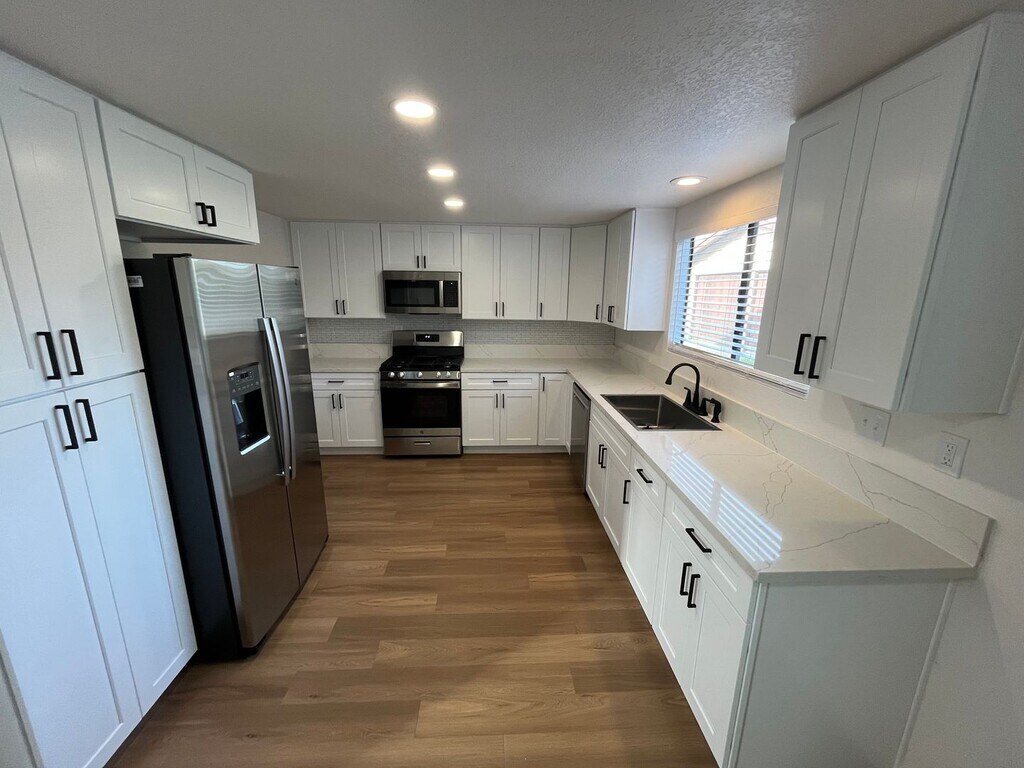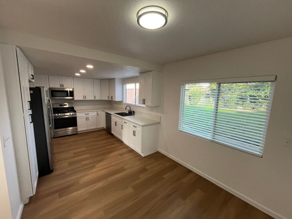 This 4 bedroom, 2.5 bathroom South-East Santa Maria home features all new paint, flooring, window coverings, plumbing fixtures, separate living and family rooms, fireplace, wet bar, remodeled open kitchen, rooftop balcony, private fenced yard, 2-car garage, gardener, refrigerator, and washer & dryer included. Must see to appreciate! SECTION 8 ACCEPTED! !!!PLEASE BE ADVISED THAT THERE WILL BE A $400/MONTH FLAT UTILITY FEE!!! This fee will cover the use of water, sewer, trash, electricity, and natural gas. If you have any questions or if you would like to schedule an appointment to see the unit, please call our office at . Applications can be found on our website at just click 'Apply Now.'