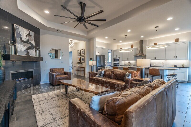 Elevated Hill Country living in this beautifully designed 4-bedroom, 3.5-bathroom home in the highly sought-after La Cima community of San Marcos. Built in 2020, this home blends modern luxury with timeless Texas charm. Step inside to soaring ceilings, abundant natural light, and an open-concept floor plan perfect for family living and entertaining. The chef's kitchen features custom cabinetry, a large island, quartz countertops, and a walk-in butler's closet, seamlessly flowing into the elegant living room, complete with a cozy gas fireplace. The primary suite serves as a true retreat, featuring a spa-inspired bathroom with a double vanity, an oversized walk-in shower, and a spacious walk-in closet. Upstairs, you'll find a game room that offers flexibility for a home gym, playroom, or workspace. Three additional bedrooms and an office provide ample comfort and storage for family or guests. Step outside to the covered patio overlooking the greenbelt, ideal for peaceful evenings or weekend gatherings. The property also includes a three-car garage and full privacy fencing. Residents of La Cima enjoy an unmatched lifestyle with resort-style amenities, including A 45-acre Central Park with trails and open fields. A Recreation Center with fitness rooms, meeting spaces, and three pools (kiddie, family, and adult). Community playscapes and sports fields for soccer, baseball, and football. Scenic walking and biking trails throughout the neighborhood. Conveniently located near Texas State University, I-35, shopping, dining, and the vibrant downtown San Marcos area. Beware of rental scams! Verify listings for accuracy, don't wire any money, and apply through official means only, not on 3rd party websites.