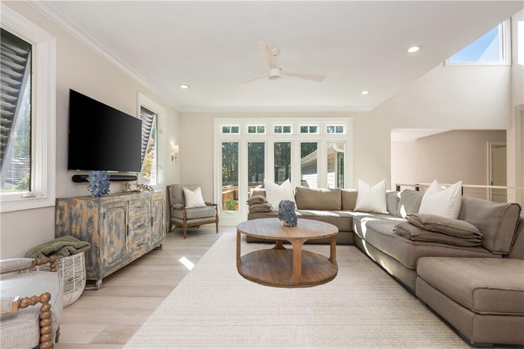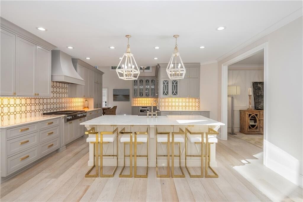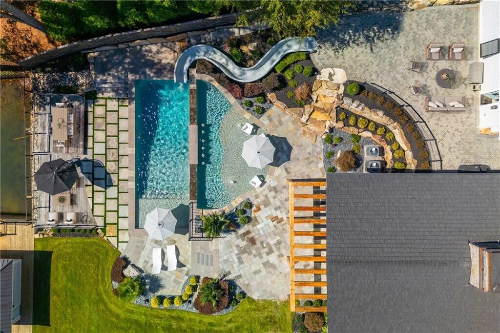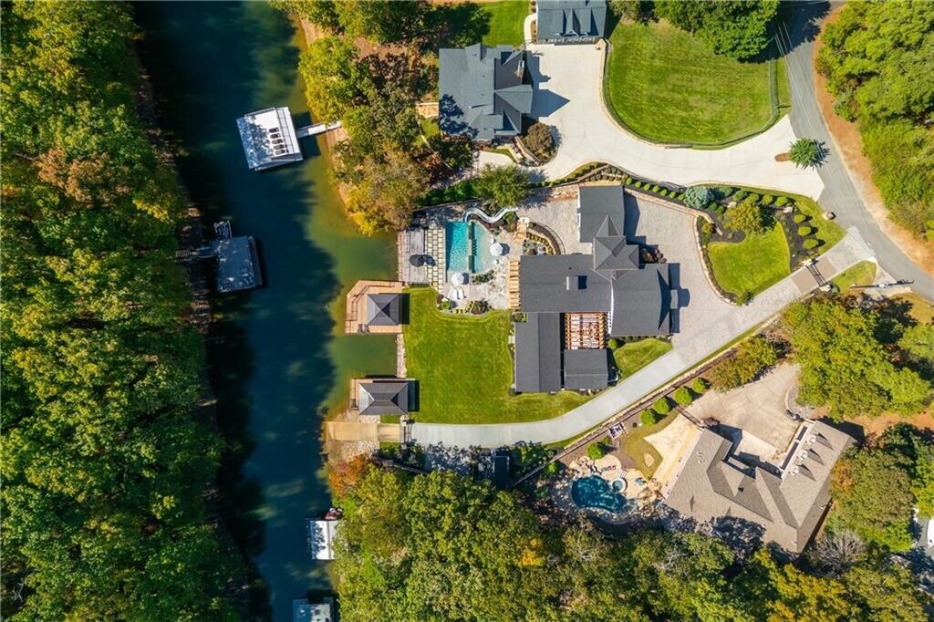 A One-of-a-Kind Lake Lanier Estate - Experience resort-style living reimagined in this extraordinary waterfront masterpiece on the highly sought-after south end of Lake Lanier. Set on 1.5 private,gated acres,this completely transformed and renovated estate offers a rare blend of architectural beauty and sophistication. The CORPS OF ENGINEERS LINE EXTENDS INTO THE WATER,granting unmatched lake access and breathtaking views. From the moment you enter through the wrought-iron gates and drive down the stone-lined drive,this home exudes craftsmanship and designer detail. Step through the grand arched entryway into sun-filled living spaces adorned with European White Oak hardwood floors and vaulted wood-beam ceilings. The open floor plan flows effortlessly between multiple great rooms,one featuring an impressive double-sided stone fireplace and a wall of glass doors that open to sweeping lake vistas. At the heart of the home is a chef’s dream kitchen,perfectly designed for both entertaining and everyday living. It features new Miele appliances,a striking Carrara marble island,custom cabinetry,a spacious butler’s pantry,and a bright morning room ideal for coffee or casual dining. Every detail has been thoughtfully curated,from statement lighting to warm gold accents that create an inviting yet luxurious atmosphere. Wake each morning to panoramic lake views from your private primary retreat,complete with a drop-down HD television,dual spacious walk-in closets with designer closet built-ins,and a spa-inspired ensuite featuring a soaking tub,steam shower with heater,and private indoor sauna. Every element has been designed for relaxation,comfort,and indulgence. This home embraces outdoor living year-round. Step into a stunning courtyard under a masterfully crafted cedar pergola,adjacent to a stylish bonus room with a wet bar and powder room. Enjoy evenings around the fire pit,soak in the jacuzzi spa,or entertain at the outdoor kitchen while the sound system plays throughout the terrace and pool area. Across the courtyard,a fully equipped private gym awaits,offering inspiration for wellness and balance - perfect for morning or afternoon workouts. Out back,the two-tier heated saltwater infinity pool takes center stage with a cascading waterfalls,fountains,a waterslide,and beautifully manicured Zeon Zoysia lawn. The poolside pergola showcases handcrafted cedar beams,blending rustic character with modern sophistication. This property is truly unmatched with its private boat ramp,cement seawall,and permitted dock complete with a boathouse and party barn,all just steps from your door. Guests will fall in love with the newly remodeled waterfront cottage featuring a kitchenette,full bath,private deck,and serene lake views. A charming barn,constructed with antique boat-hull rafters,adds character and endless possibilities for entertaining,artistry,or storage. Practicality meets perfection with two septic systems,a newer roof with 50-year shingles,new hurricane shutters,new gutters,and lifetime siding with a transferable warranty. Every detail has been carefully planned for both beauty and peace of mind. From its architectural artistry to its resort-inspired amenities,this home was designed to elevate everyday living into an unforgettable experience. Whether you’re hosting elegant lakefront gatherings,relaxing fireside,or savoring quiet mornings on the water,this property embodies the very best of luxury,privacy,and craftsmanship. Conveniently located near GA-400,shopping,and schools,this home offers both luxury and accessibility. Home is located at the front of one of the only Coves on Lanier that the CORE has dug out,ensuring that the water levels never get too low.