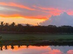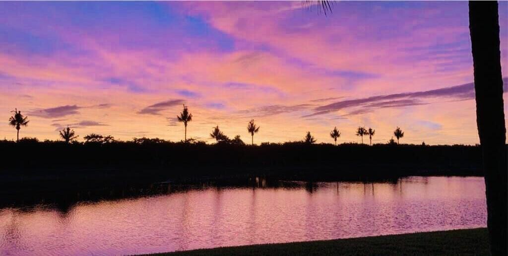 Comfort,style & unforgettable serene lake & golf course views paired with breathtaking sunsets bursting with vibrant colors fill this beautifully renovated one-story home of 3 bedrooms,an office & 2.5 baths. Volume ceilings & sleek gray-toned wood-grain porcelain tile floors create a sophisticated flow. The open kitchen features 42" white & gray cabinetry,quartz & marble counters with a waterfall edge,tile backsplash,stainless steel appliances,and a warm wood accent wall. French doors lead to a private office; remodeled secondary bathrooms offer contemporary finishes. The spacious primary suite boasts custom-designed closets. Relax on the patio and take in tranquil lake & golf course views. Roof 2023,A/C 2021,water heater 2017,accordion hurricane shutters for peace of mind. MLS ID B26015999